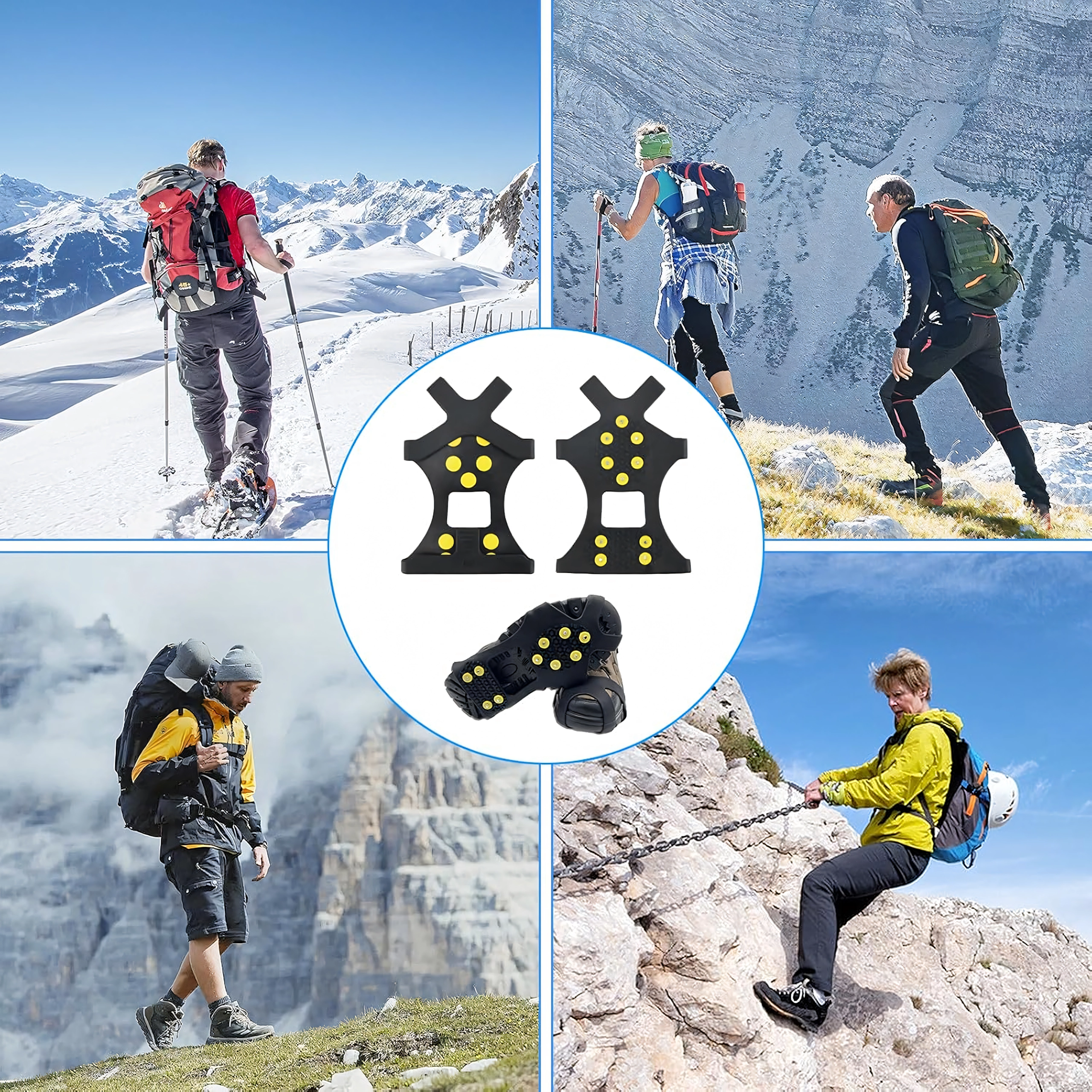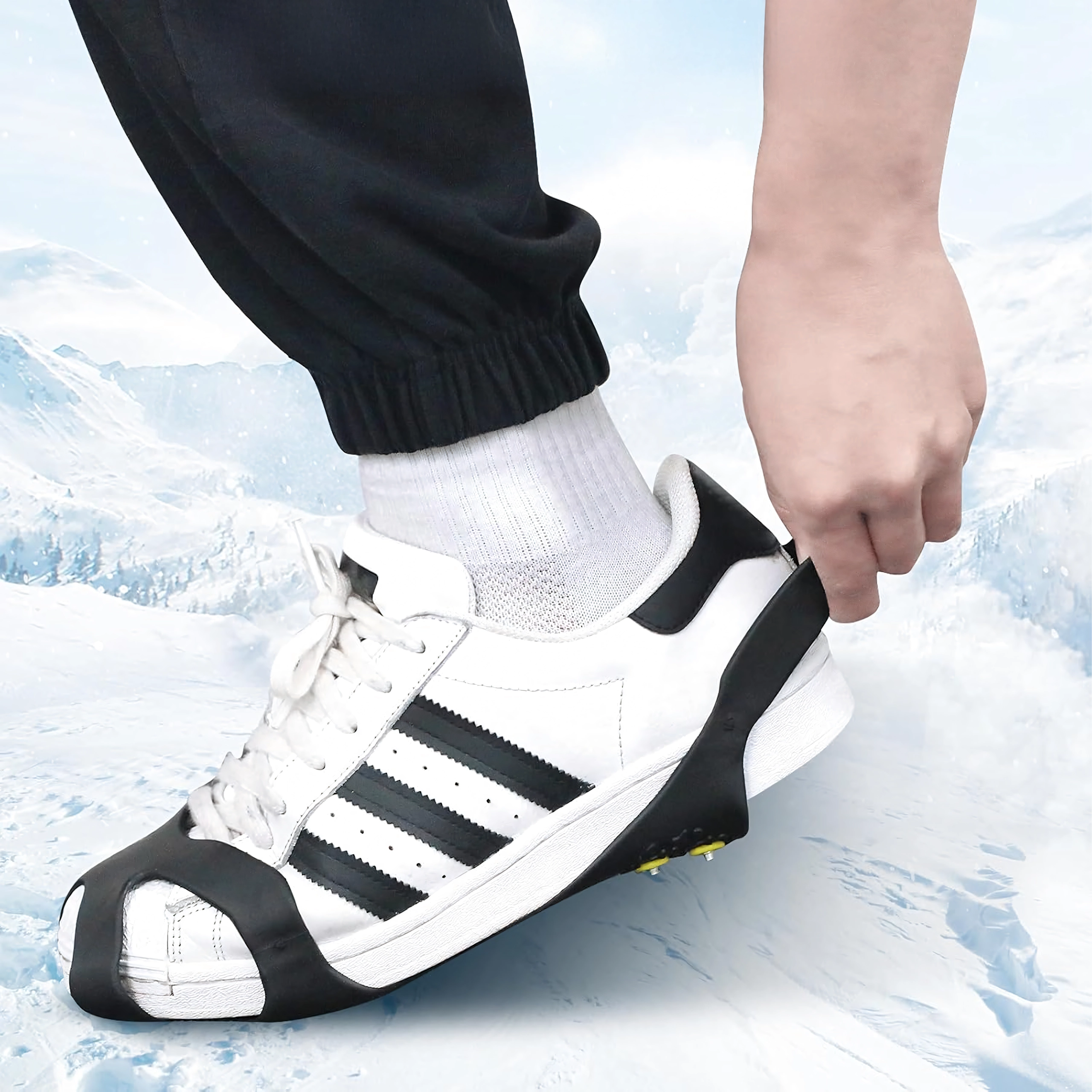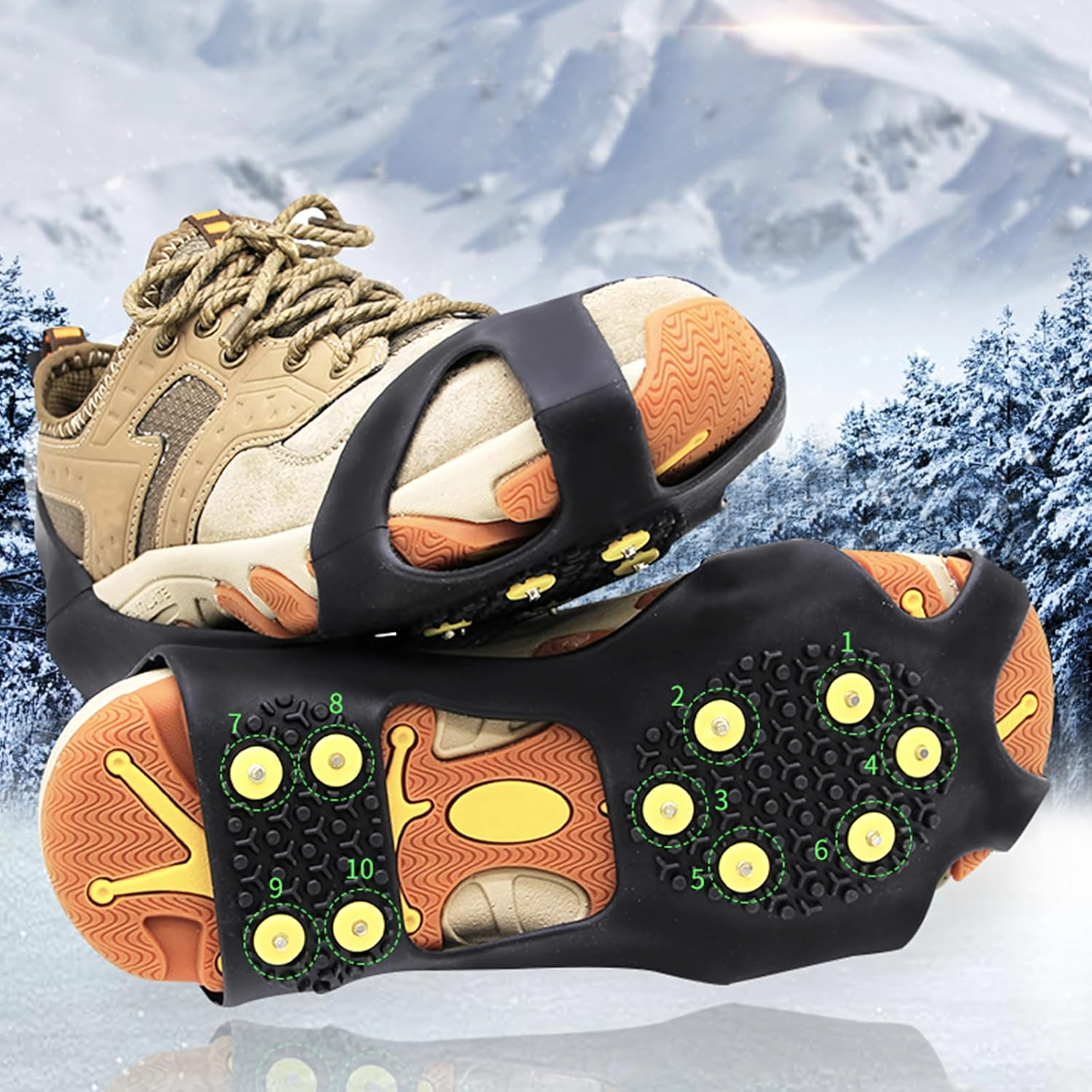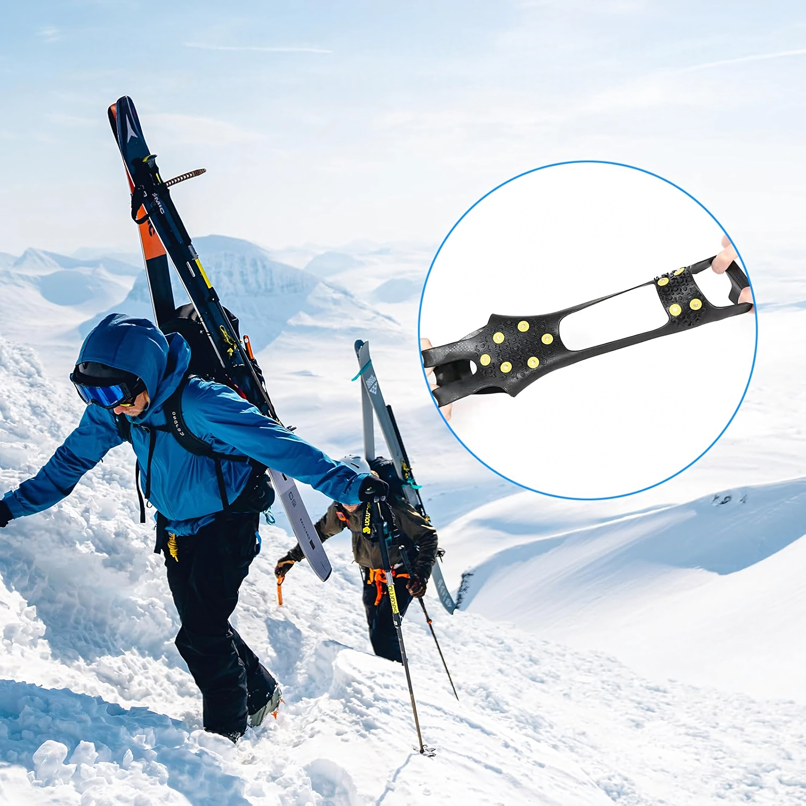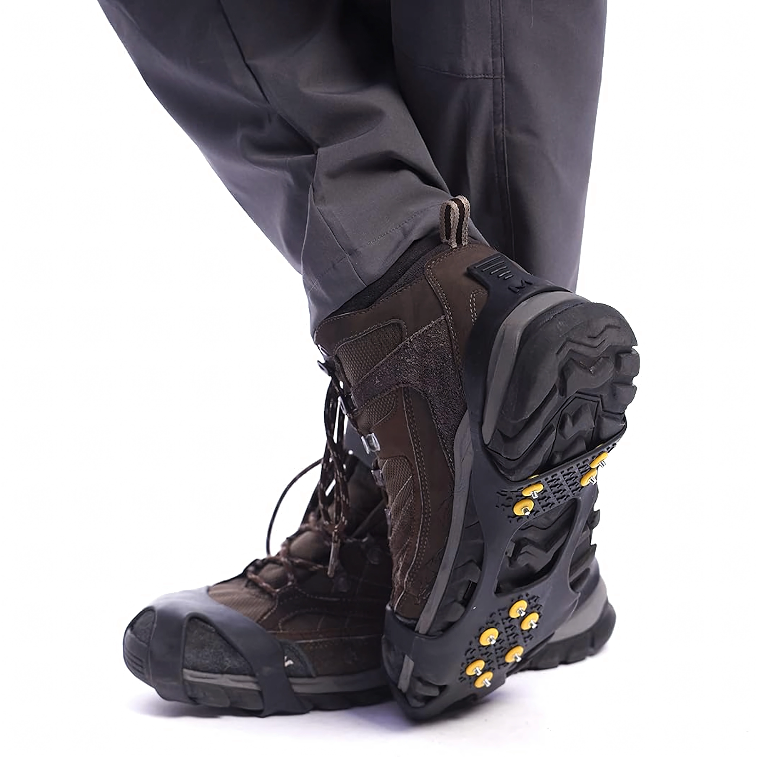 Ti metalpigge på hvert overtræk sikrer pålideligt greb og stabilitet ved gang på glat is eller fasttrampet sne.