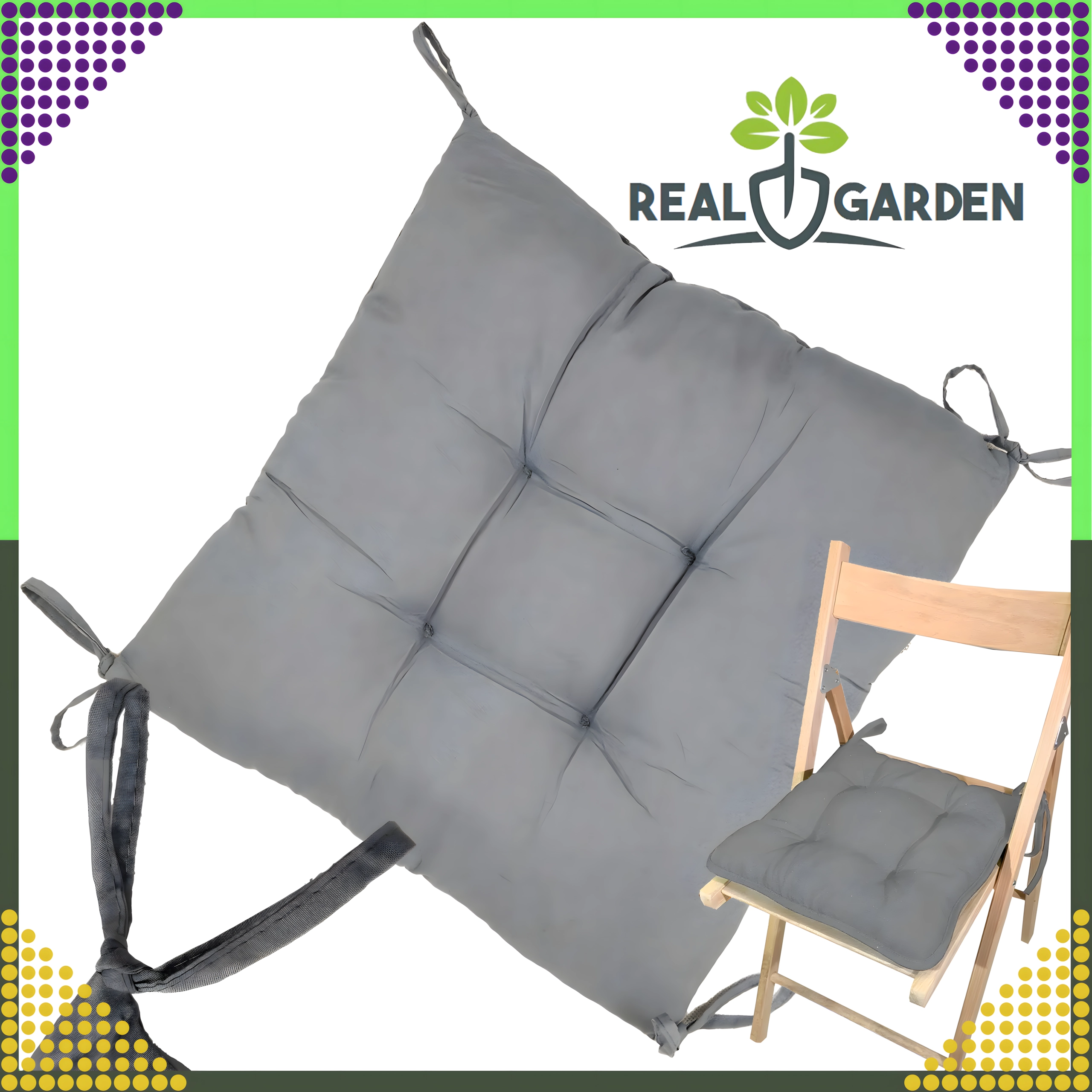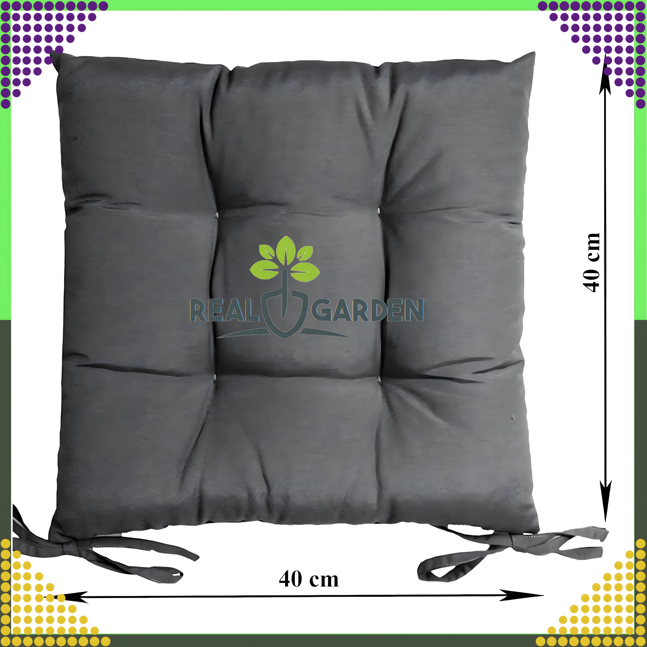 Komfortabel og holdbar stolehynde i størrelsen 40 × 40 × 8 cm til køkken, stue og have. Takket være bindestropper bliver den på plads, skumfyld bevarer formen, og det behagelige quiltede stof sikrer komfortabel siddeoplevelse.