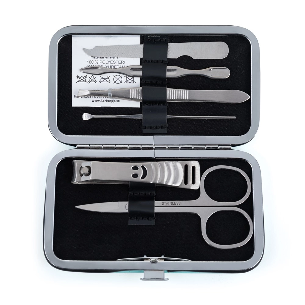I æsken finder du en pung med lynlås til sikker opbevaring af kontanter og kort, en blød kosmetiktaske eller etui til småting i håndtasken, et kompakt dobbeltspejl til hurtige justeringer i løbet af dagen og et praktisk manicuresæt til neglepleje. Det hele er placeret i en gaveæske, der imponerer ved første øjekast.