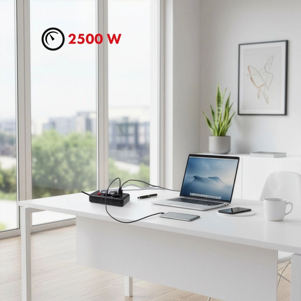 Hold styr på kablerne ved stikkontakterne og forsyn alt fra ét sted. MACLEAN MCE392 kombinerer 4 Schuko-stik med tre USB-udgange, så du nemt kan tilslutte bordlampe, bærbar, TV og oplader til telefon eller tablet – uden ekstra adaptere. Maksimal belastning på 2500 W og indgang 110–240 V AC sikrer drift i et bredt område.