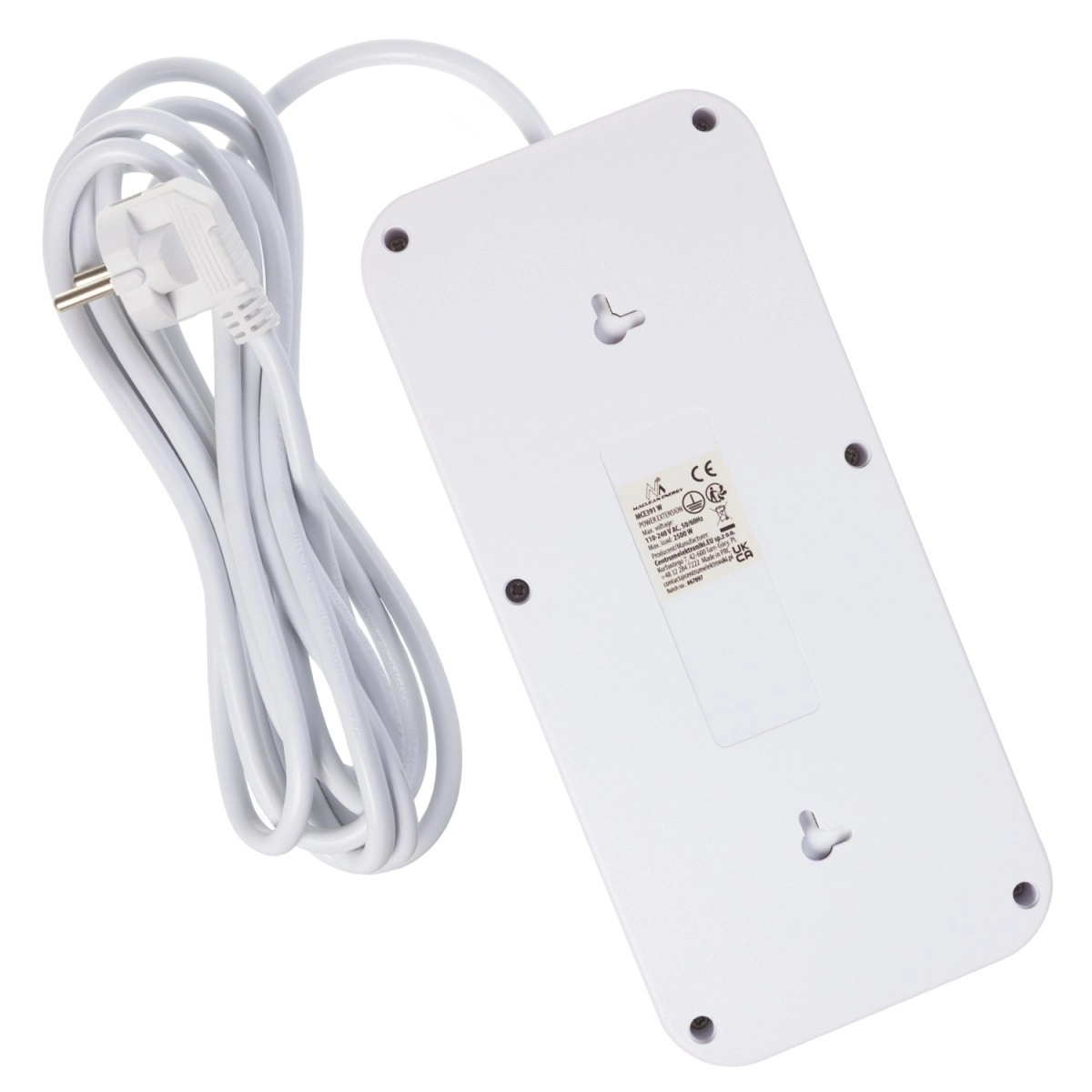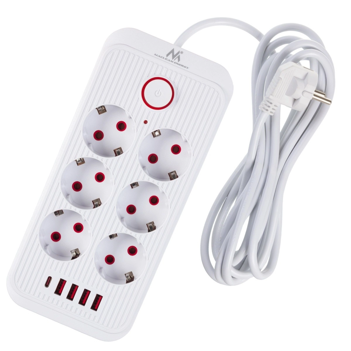 Denne moderne strømskinne udvider antallet af tilgængelige stik og erstatter samtidig separate opladere. Seks Schuko-stik suppleres af fem USB-porte, heraf 4× USB‑A og 1× USB‑C, så du nemt kan oplade telefon, tablet, hovedtelefoner og andet tilbehør uden unødigt kabelrod.