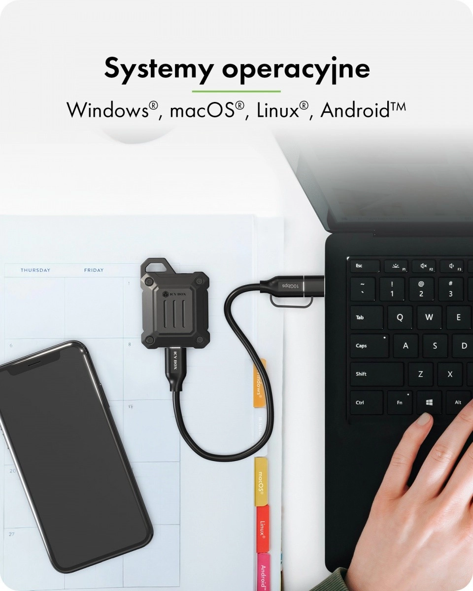 Kompakt kabinet til M.2 2230 NVMe SSD med USB 3.2 Gen 2 Type‑C tilbyder overførselshastigheder op til 10 Gb/s, et robust metalhus i zinklegering og fremragende køling takket være den medfølgende varmeledende pude. Ideelt til rejser – let, solidt og kompatibelt med Windows, macOS, Linux og Android.
