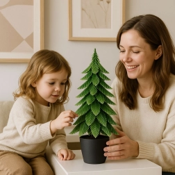 Det kunstige træ i en minimalistisk potte bringer et diskret vinterligt skær til rummet. Takket være omhyggeligt formede grene med sølvfarvet rim virker det naturligt og fremhæver straks den festlige udsmykning uden behov for vedligeholdelse.