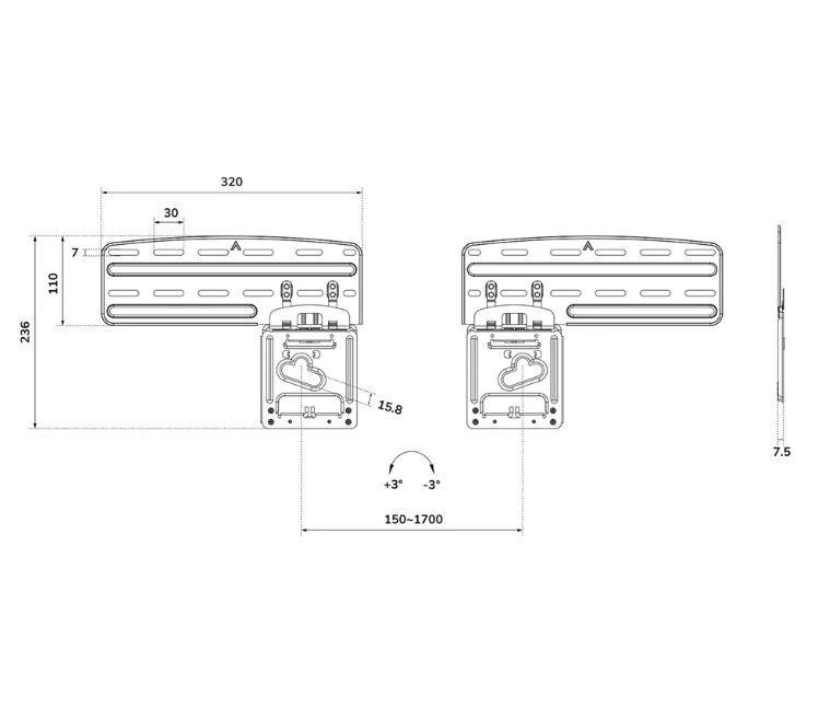 - Ultra slim profil: kun 3–7,5 mm fra væggen