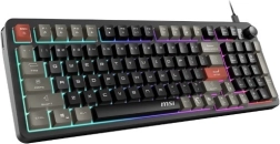 MSI FORGE GK110 er et fuldstørrelses gamingtastatur med kablet tilslutning og iøjnefaldende RGB-belysning. Det tilbyder stille og responsive tastetryk, dedikeret volumenhjul, hurtige genveje til medier og lys samt tretrins hældningsjustering for komfortabel skrivning og lange gamingmaratoner.