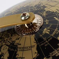 Det detaljerede globusdesign i sort og guld samt den stabile metalbase tilfører din indretning et moderne og luksuriøst præg.