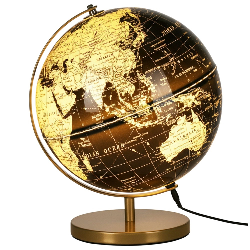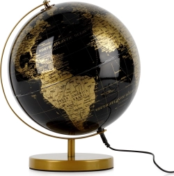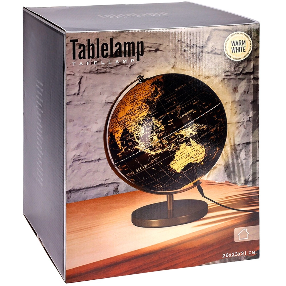 Denne dekorative bordlampe formet som en globus er et både praktisk og æstetisk tilbehør til stuen, soveværelset eller kontoret. Det sort-guld look med detaljeret udførelse virker moderne, og takket være det varme LED-lys skaber den en hyggelig atmosfære uden at blænde.