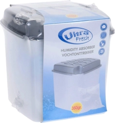 Det lille design passer på en hylde eller i et hjørne og hjælper diskret med at holde miljøet tørt og rent.