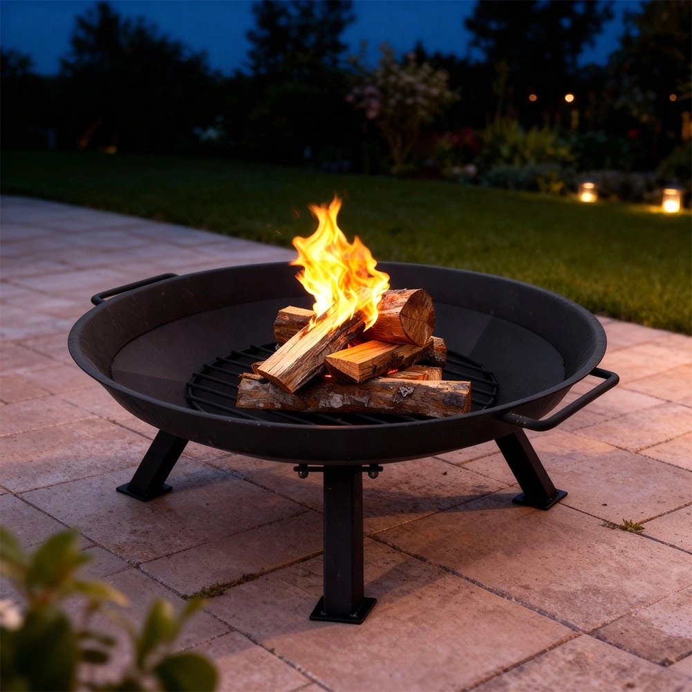 Skab en magisk stemning derhjemme med et robust metalbålsted på 56 cm i diameter. Den brede skål sikrer effektiv luftcirkulation og jævn forbrænding, mens den stabile sokkel giver sikkerhed på både græsplæne og terrasse. To sidehåndtag gør det nemt at flytte bålstedet derhen, hvor du har brug for varme og hygge.