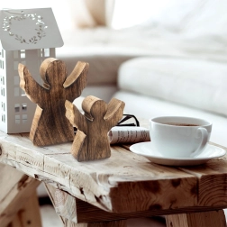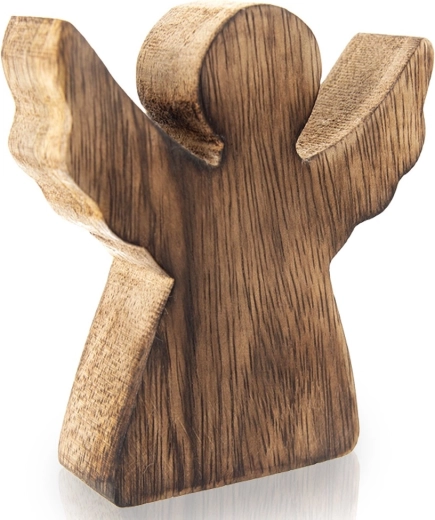 Denne elegante englefigur er fremstillet af kvalitets-mangotræ i en naturlig nuance. Den minimalistiske silhuet med udfoldede vinger tager sig flot ud på hylde, kommode og på et festligt dækket bord. Takket være det tidløse udtryk passer den til vinter- og juletiden, men pynter hjemmet hele året.