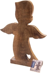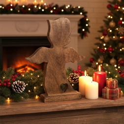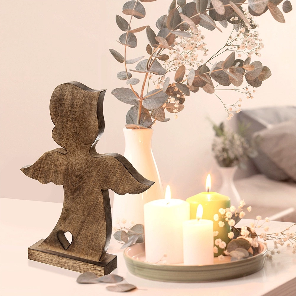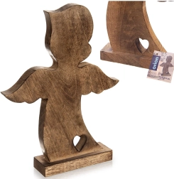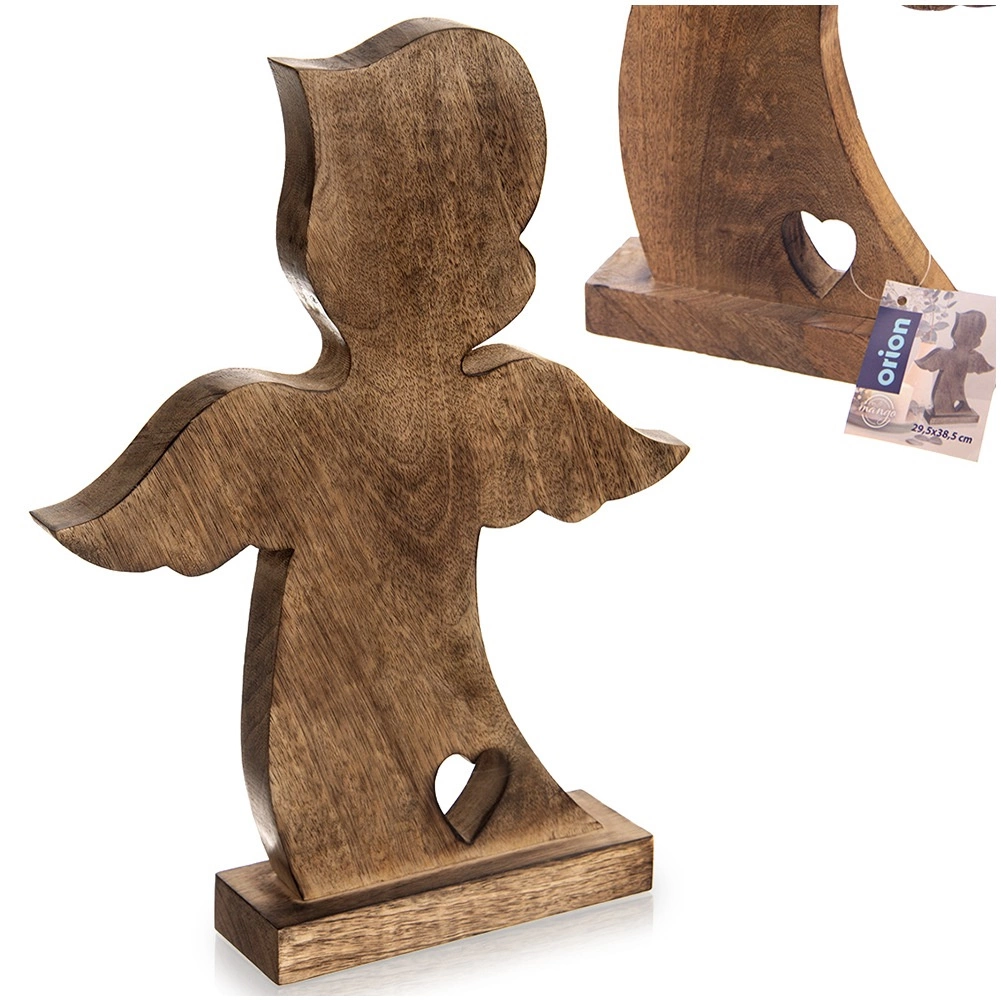 Den engleagtige figur i kvalitets mangotræ udmærker sig ved sit naturlige udseende og rene linjer. Takket være den solide sokkel står den stabilt og er klar til øjeblikkelig udstilling i stue, soveværelse, entré eller kontor. Den minimalistiske form med hjerteudskæring understreger hjemmets hyggelige atmosfære, især i juletiden, men også resten af året.