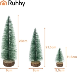 Skab en hyggelig, festlig stemning derhjemme med det søde sæt af tre mini-juletræer fra RUHHY. De har realistiske, snedækkede nåle, stabil træstamme og passer perfekt på bord, kommode samt til DIY-dekorationer. De forskellige højder muliggør effektfuld styling, og den lette, holdbare konstruktion sikrer lang levetid.