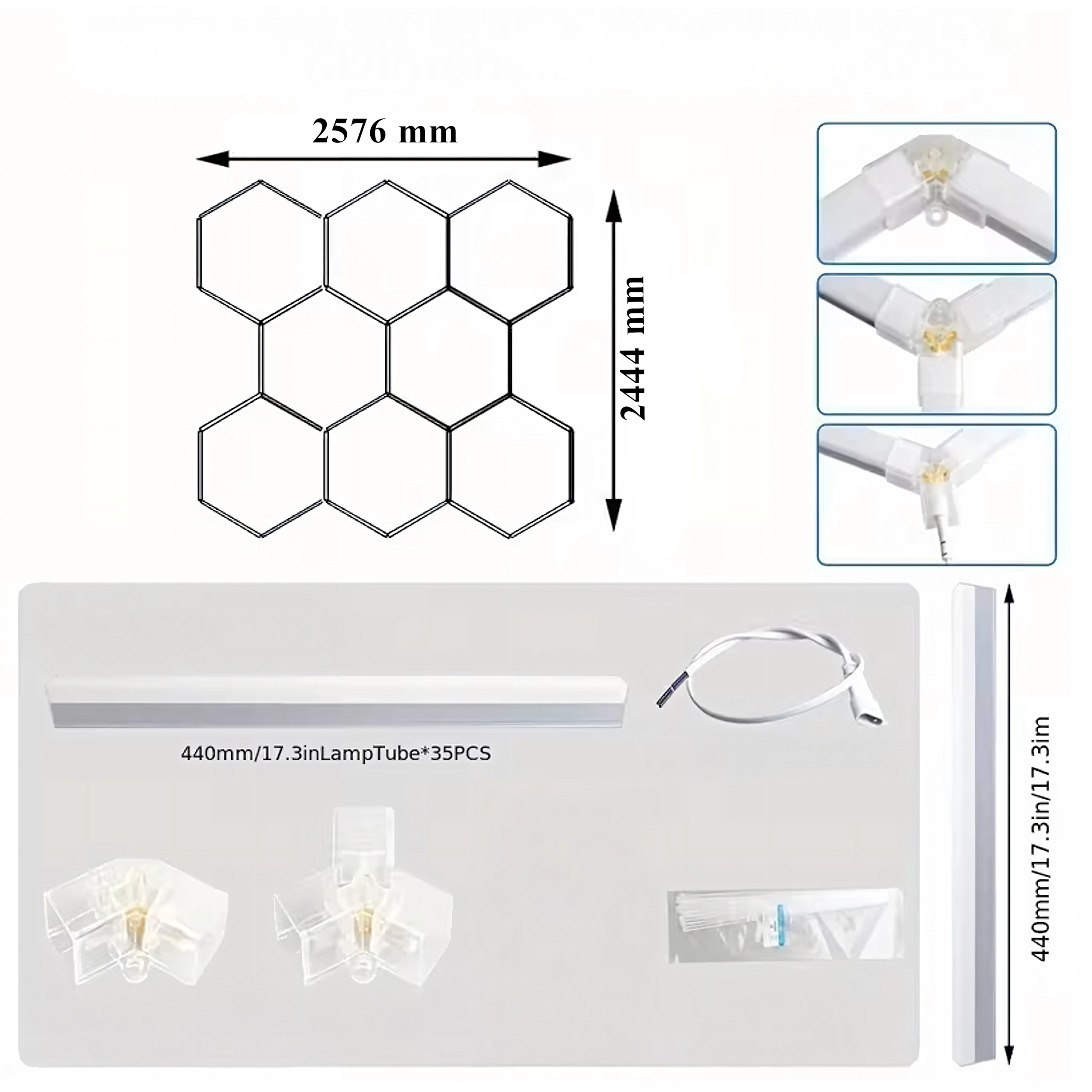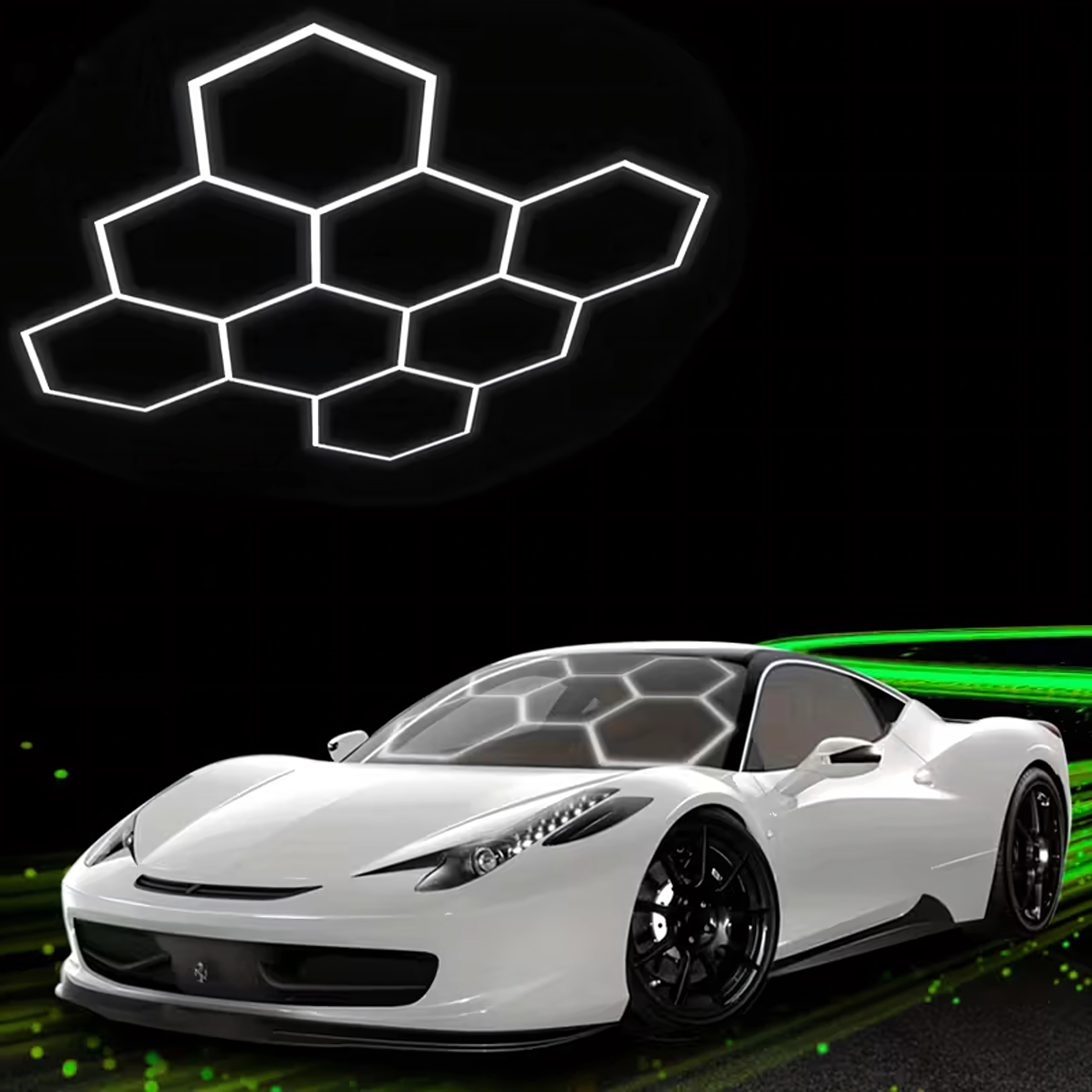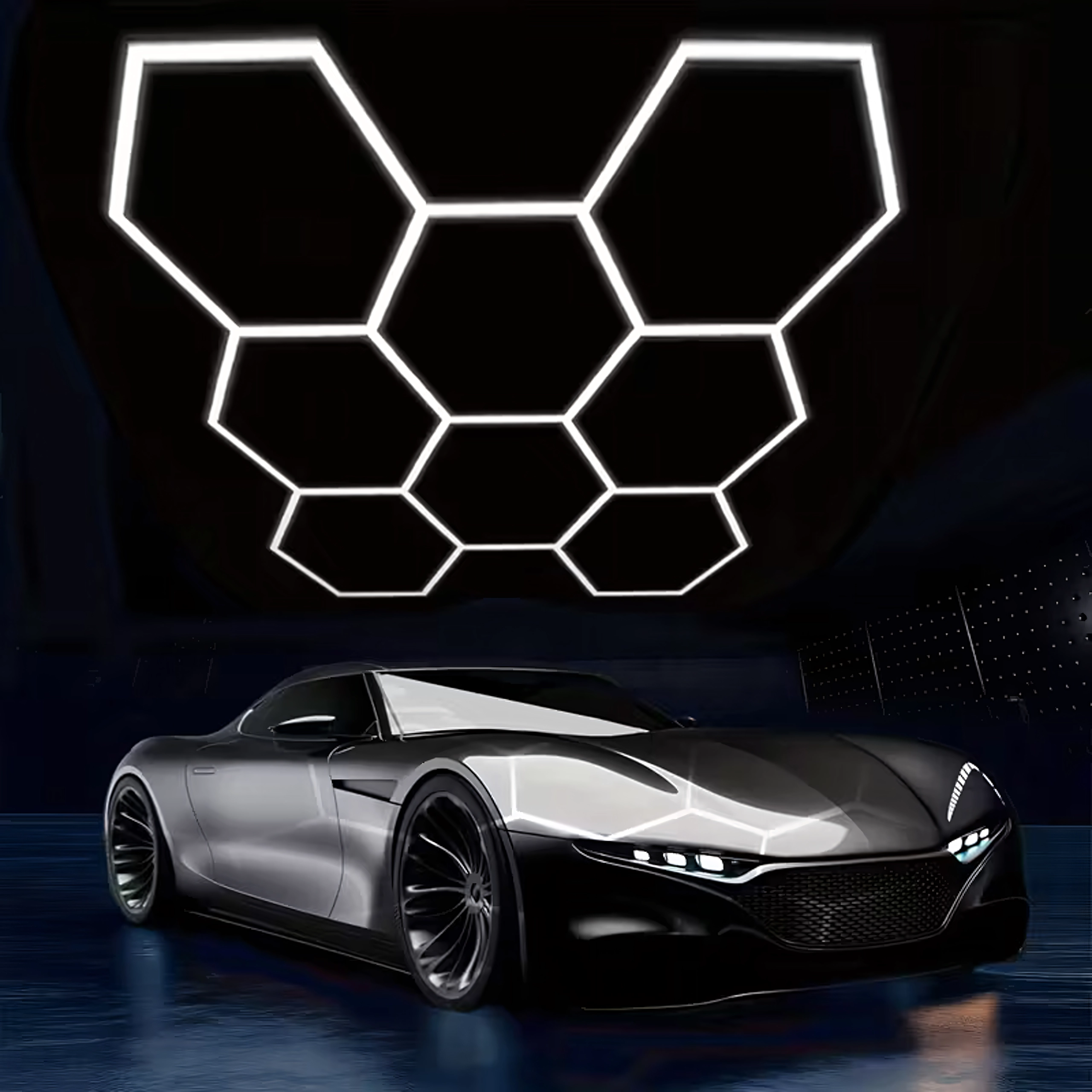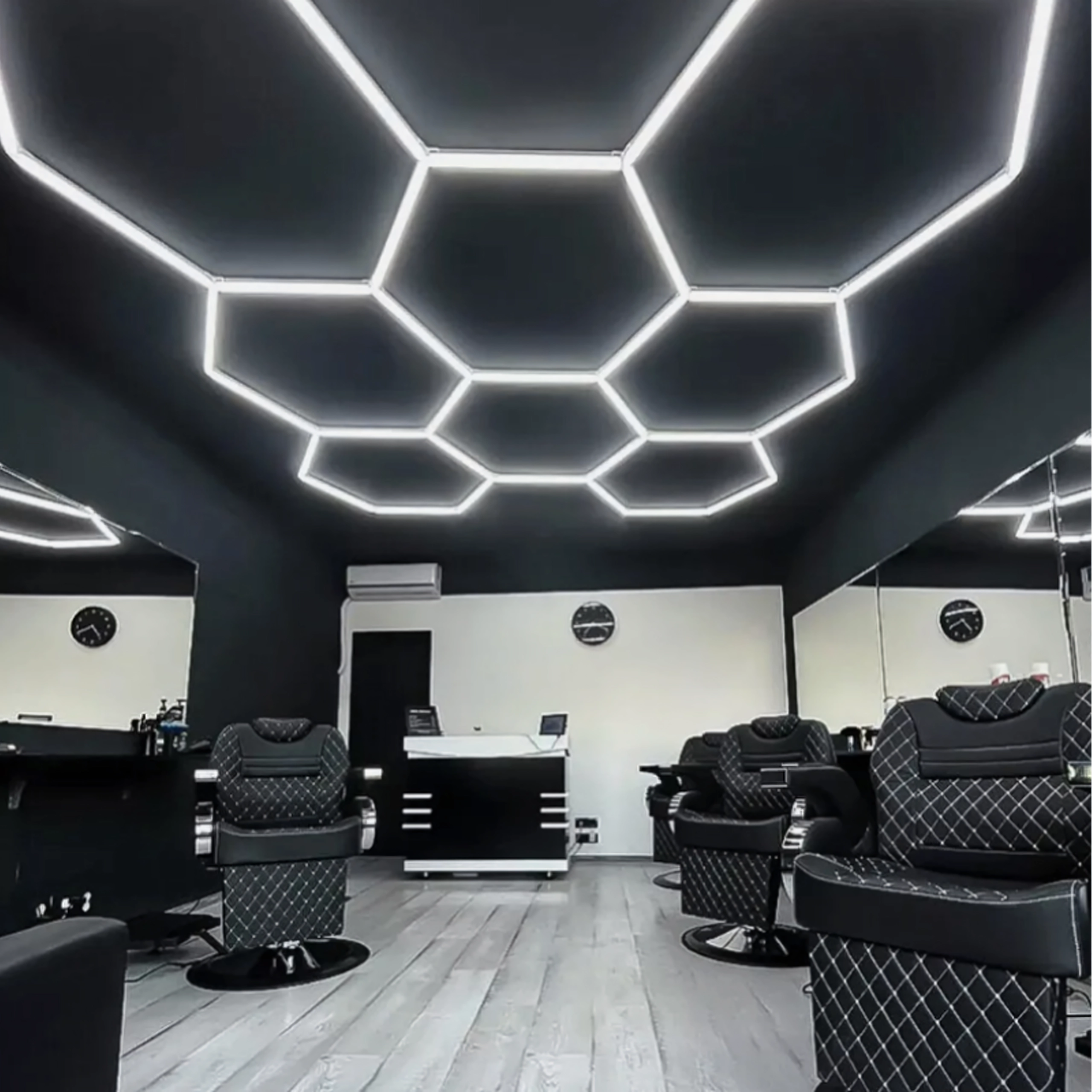 Bring moderne design og perfekt belysning ind i dit rum. Det modulære hexagonale LED-system med mål på 257 × 244 cm og en effekt på 280 W leverer klart hvidt lys på 6500K, ideelt til garage, værksted, detailing-studie, kontor og hjemmeinteriør. Det stilfulde “bikube”-mønster sikrer jævn belysning og et attraktivt udseende.