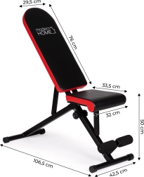 Denne multifunktionelle bænk fra MODERN HOME udvider dit hjemmegym med et pålideligt underlag til presøvelser, rows og mavetræning. Takket være det brede udvalg af ryglænspositioner og det justerbare sæde tilpasser du nemt vinklen til både flade og skrå øvelser. Den bløde polstring i holdbart økolæder og den solide stålramme sikrer stabilitet og komfort.