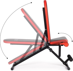 Ryglænet tilbyder op til 6 hældningsniveauer, og sædet har 2 positioner. Du kan nemt skifte mellem flad og skrå bænk og målrette forskellige dele af bryst- og mavemusklerne.