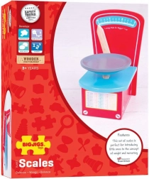 Denne fuldt ud funktionelle køkkenvægt i træ fra Bigjigs Toys er et ideelt supplement til børnenes legekøkken. Når børn leger madlavning, træner de tællefærdigheder, vurdering af vægt og sociale færdigheder gennem fælles leg.