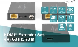 Professionel HDMI-forlænger muliggør overførsel af billede op til 70 m via CAT-kabel med støtte for 4K 60 Hz (4:4:4), HDR og PoC (Power over Cable), hvor kun én enhed behøver strøm. Den tilbyder videobåndbredde på 18 Gbps, automatisk EDID-detektion og HDMI Loop-Out til lokal monitor.