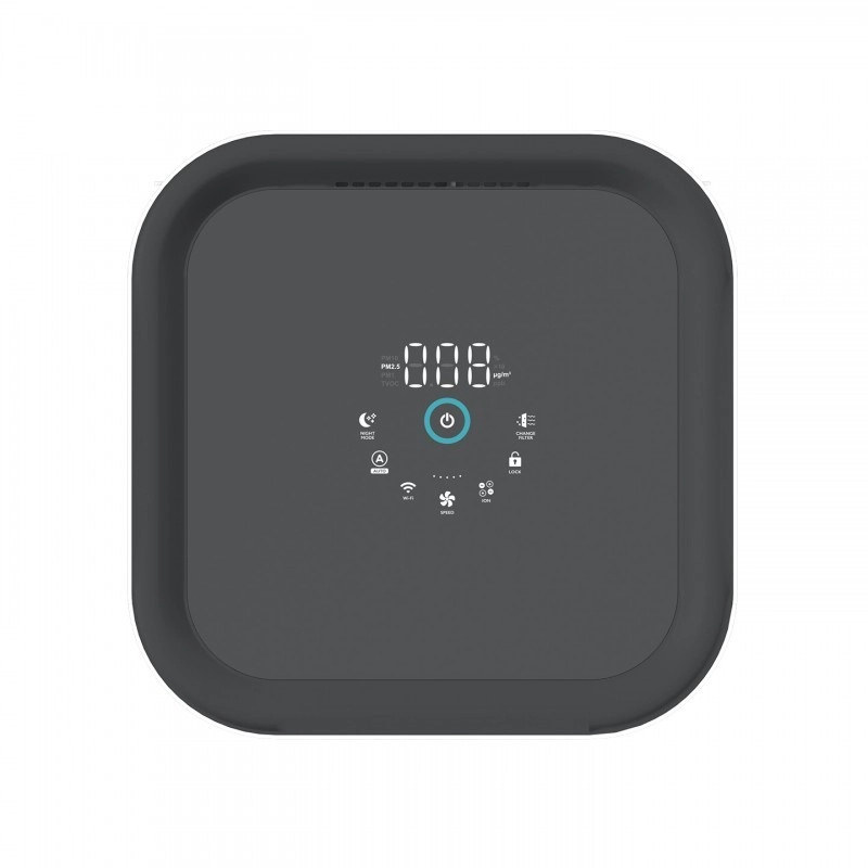 Kraftfuld luftrenser til arealer op til 80 m², som kombinerer 5‑trins filtrering (forfilter, HEPA, kulfilter, UV‑C LED, Plasma ION) med wifi‑styring via mobilapp. Opfanger op til 99,95 % af partikler ned til 0,3 µm inklusive PM1/PM2.5/PM10, allergener, bakterier, vira og lugte og viser luftkvalitet i realtid på en farvet touchskærm.