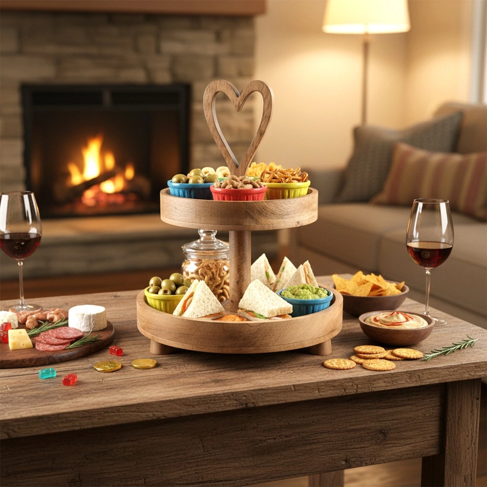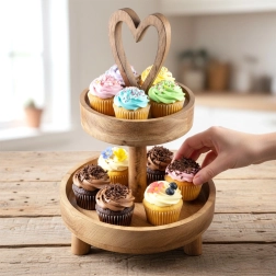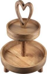 Hele konstruktionen er i massivt mangotræ, som er naturligt modstandsdygtigt over for fugt, ikke deformerer, ikke absorberer lugte og tørrer hurtigt. Det praktiske hjerteformede håndtag gør serveringen lettere, og den sammenklappelige konstruktion sparer plads ved opbevaring og transport. Perfekt til hjemmet, catering og sweet tables.