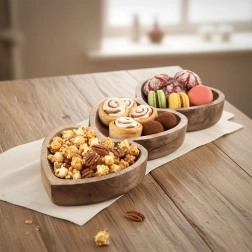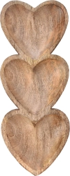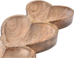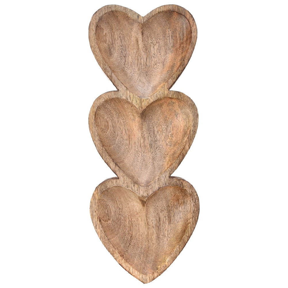 Det elegante aflange fad i målene 40 × 16 × 3,5 cm byder på et originalt design med tre hjerteformede skåle i ét stykke. Hvert hjerte måler cirka 16 × 16 cm, hvilket gør det nemt at adskille forskellige lækkerier – fra tapas og saucer til praliner og tørret frugt.