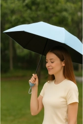 Leder du efter en paraply, der er lille i tasken, men stor i ydeevne? Denne kompakte, foldbare paraply i elegant pastellyseblå giver pålidelig beskyttelse mod regn og sol. Det mørke indre lag hjælper med at reducere blænding, og sammen med certificeret UV-beskyttelse UPF 50+ beskytter den huden på solrige dage.
