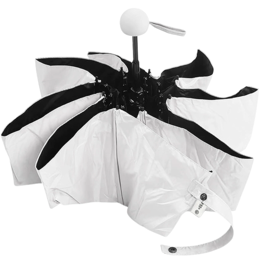 Den stilfulde grå paraply kombinerer elegant udseende og praktisk funktionalitet. Takket være UPF 50+-overfladen blokerer den effektivt skadelig UV-stråling, mens det vandtætte polyesterstof beskytter i regnvejr. Det lette design og den foldbare konstruktion sikrer, at den nemt passer i tasken, så du altid har den ved hånden.