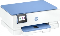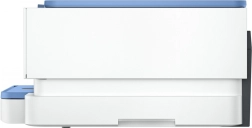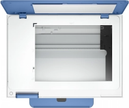 Den praktiske papirskuffe til 125 ark og en separat fotobakke til 15 ark gør håndteringen af medier enkel. De kompakte mål og det moderne design i hvid med blå accenter passer ind i ethvert hjem eller lille kontor.