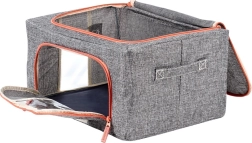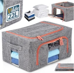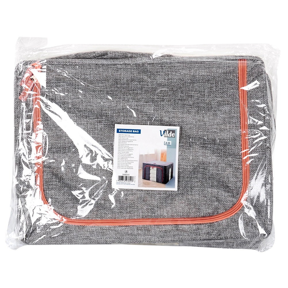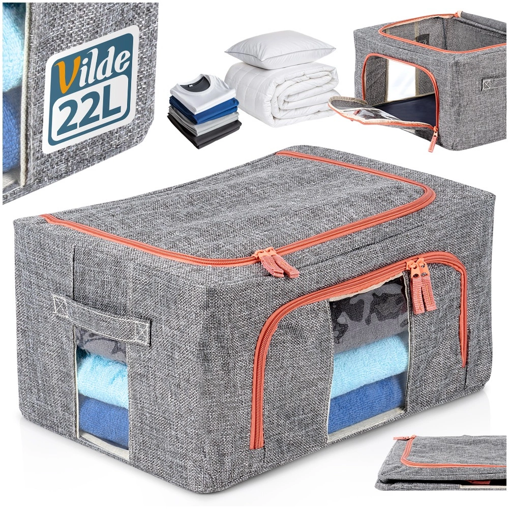 Hold orden i garderoben og under sengen. Den robuste tekstilorganisator i polyester i grå melange med kontrastlynlås giver ren og sikker opbevaring af sengetøj og sæsontøj. Det gennemsigtige vindue giver øjeblikkeligt overblik uden at åbne, og metalrammen holder formen, så boksen ikke falder sammen.