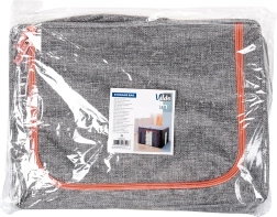 Stærkt polyestervæv i grå melange med kontrastlynlås er både robust og stilfuldt. To sidehåndtag gør det nemt at bære og trække ud.