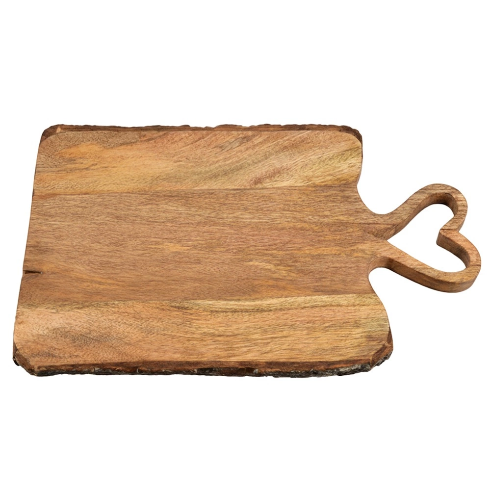 Dette kvalitetsbræt i mangotræ forener funktionalitet og naturligt design i dit køkken. Takket være den robuste tykkelse på 2 cm står det stabilt, når du skærer kød, grøntsager og frugt, og det fungerer samtidig perfekt som serveringsfad til oste og forretter. Det praktiske hjerteformede hul gør det nemt at bære og hænge op.