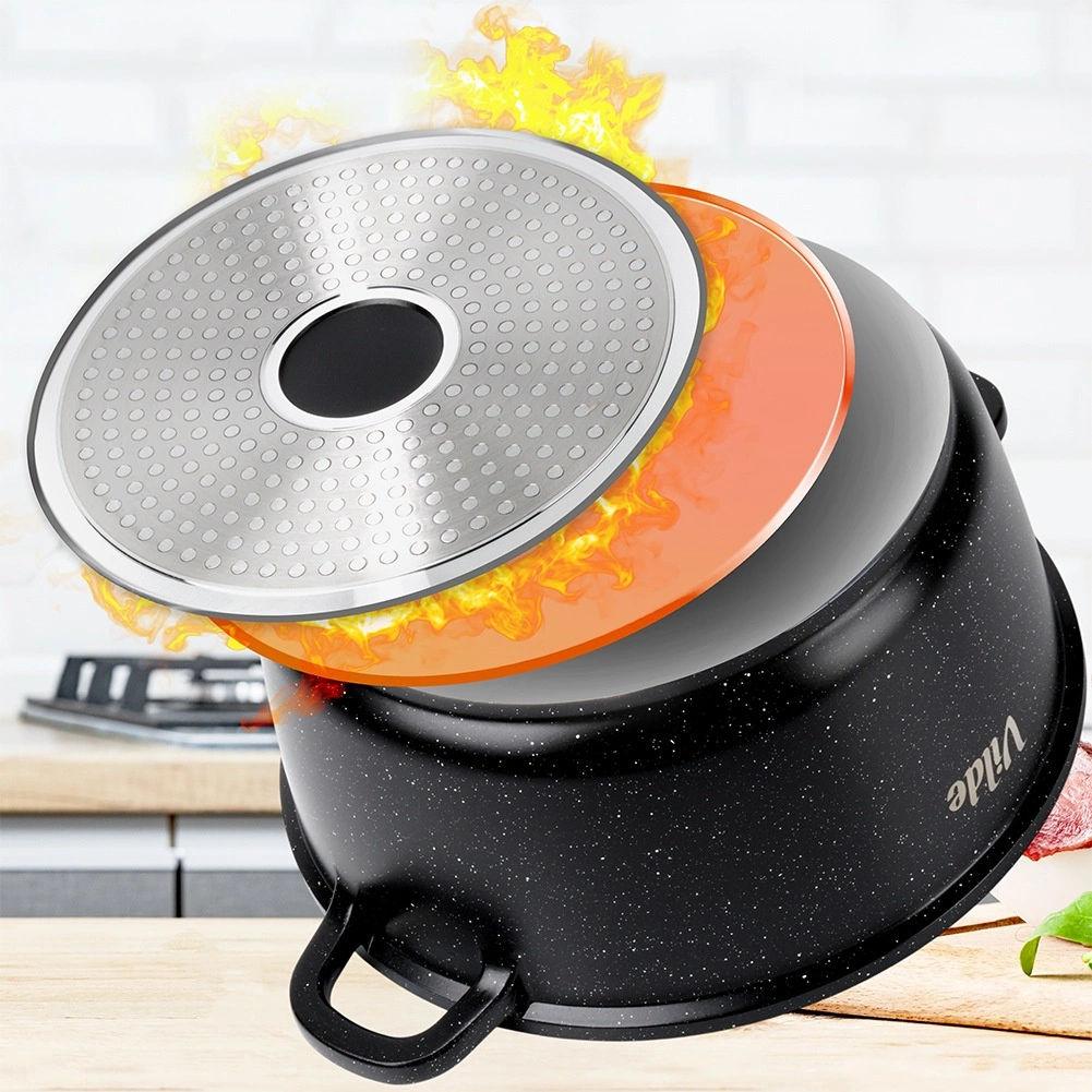 Den flerlags bund med induktionsplade sikrer hurtig og jævn varmefordeling. Velegnet til gas, el, glaskeramik og induktion.