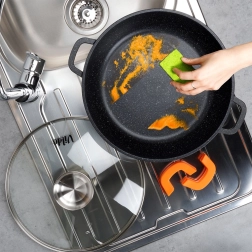 Den holdbare granitbelægning gør det muligt at lave mad med minimalt fedt og er let at rengøre – også egnet til opvaskemaskine.