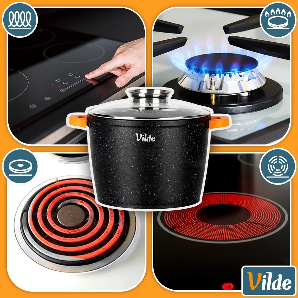 - Kompatibel med alle kogeplader – gas, el, glaskeramik, induktion.