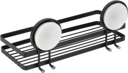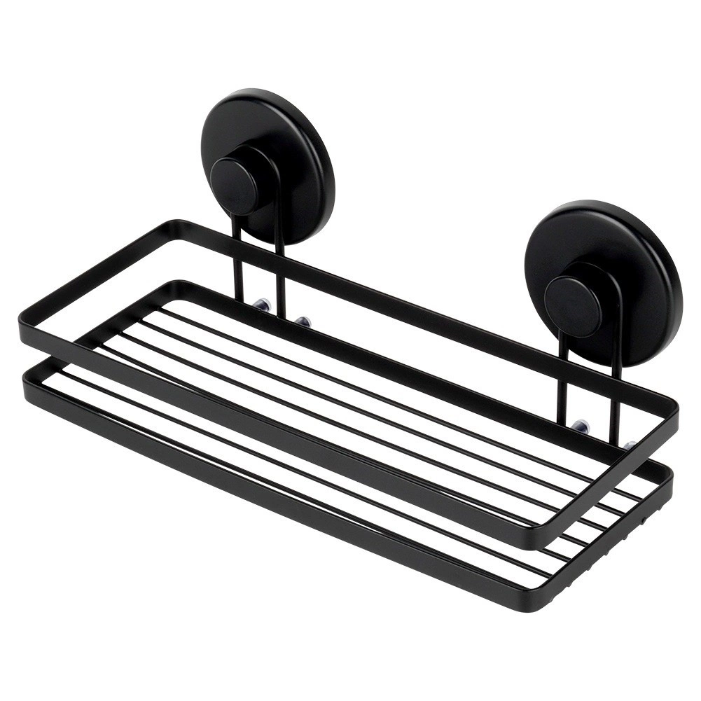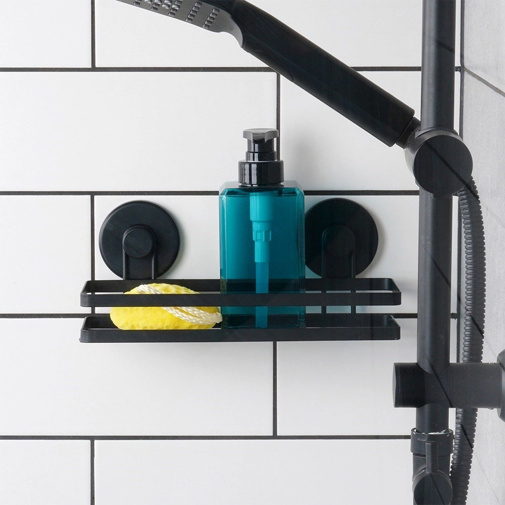 Praktisk brusehylde i robust metal med mat sort finish og stærke sugekopper til montering uden boring. Tilbyder stabil fastgørelse, hurtig afledning af vand og bæreevne op til 3,5 kg, så shampoo, gel og tilbehør altid er lige ved hånden.