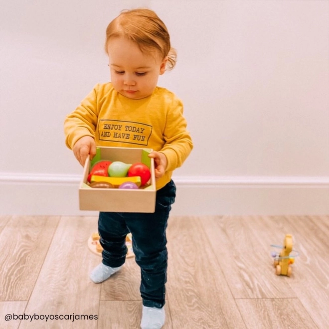 I denne kasse finder du forskellige træfrugter, såsom bananer, æbler, jordbær eller pærer. For børn er det et fantastisk legetøj, som ikke kun underholder dem, men også uddanner dem om værdien af en sund og afbalanceret kost. Legen er designet til at udvikle finmotoriske færdigheder, og mens de leger, lærer børnene også, hvor deres mad kommer fra og hvordan det tilberedes.