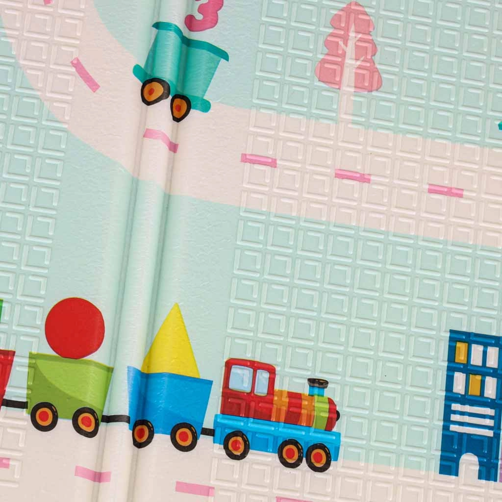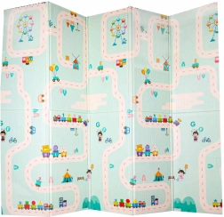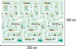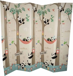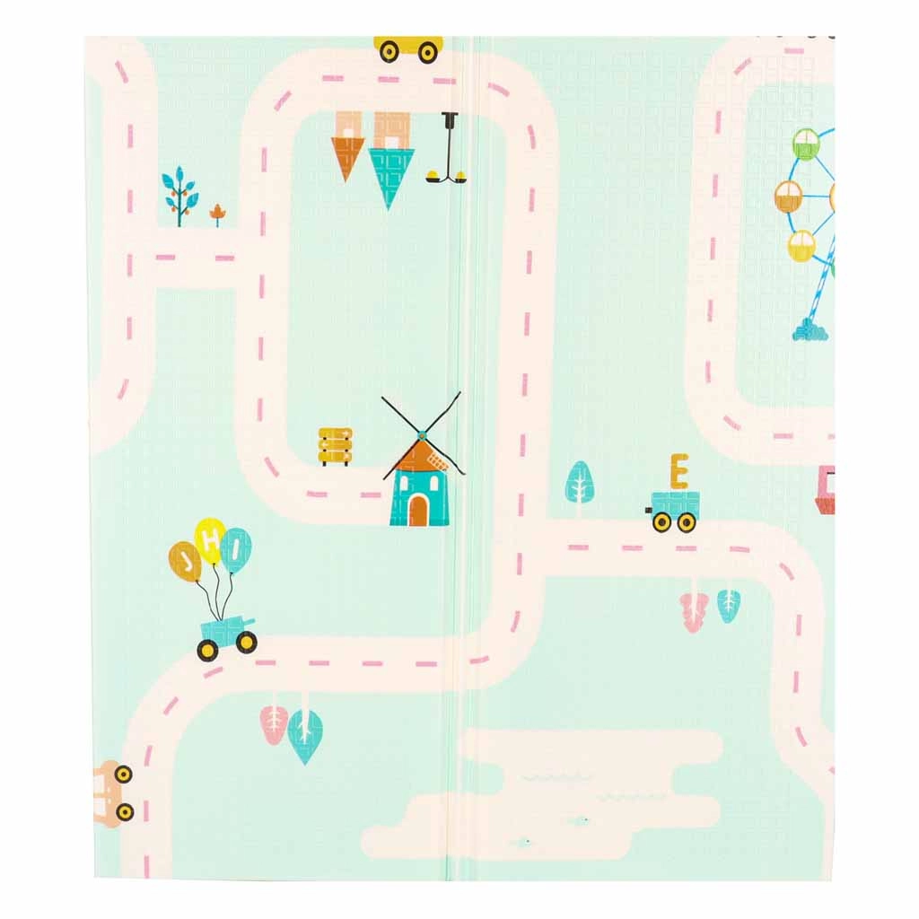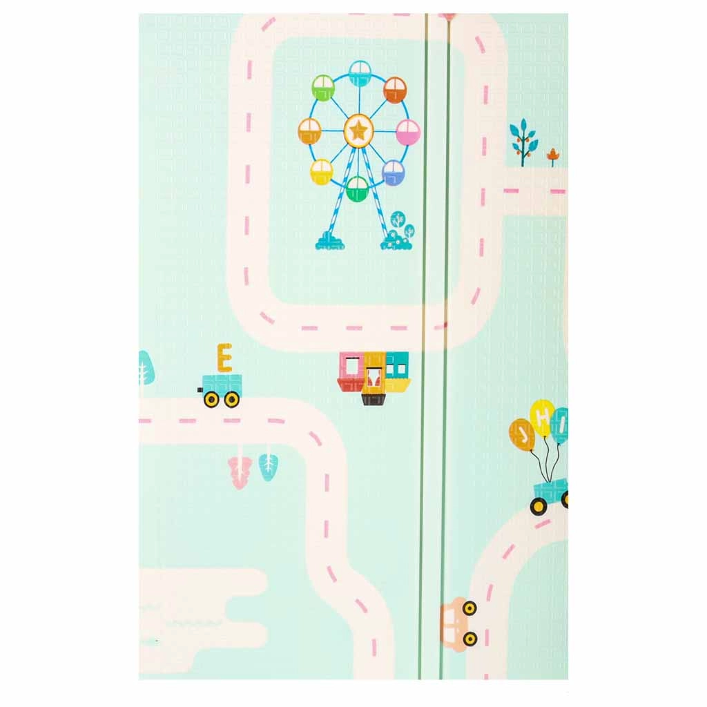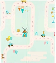 Praktisk børnemåtte i XPE-skum, der giver blød affjedring, varmeisolering og dobbeltsiddet design med pandaer og vejbaner til fantasifuld leg. Den er vandafvisende, nem at rengøre, har skridsikker struktur og takket være harmonikafoldning ryddes den hurtigt op og er let at transportere. En praktisk taske til nem opbevaring medfølger.
