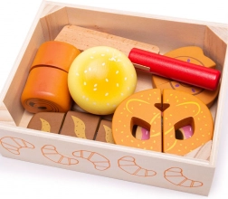 Vi præsenterer træskæresættet til bagværk, som er designet til alle børn, der ønsker at udforske køkkenets magiske verden. Dette farverige sæt inkluderer forskellige former for bagværk som croissanter, donuts og brød, der kan "skæres" med den medfølgende trækniv. Legetøjet er lavet af kvalitets træ og forbundet med velcro, hvilket muliggør interaktiv og realistisk leg.