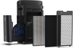 Den smarte luftrenser med befugtning SHARP UA-KIN42E-H bringer Plasmacluster Ion 25000-teknologi, tredobbelt mekanisk filtrering (inklusive HEPA) og en indikator for luftkvalitet. Velegnet til rum op til 28 m², fjerner effektivt 99,97 % af partikler på 0,3 µm, eliminerer bakterier, vira, allergener og skimmelsvampe, dæmper lugte og statisk elektricitet og forbedrer samtidig hudens hydrering.