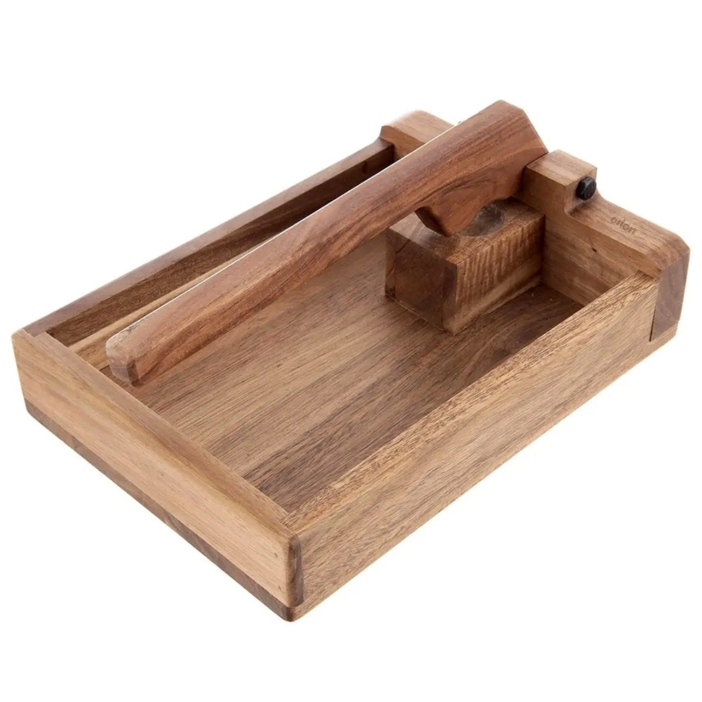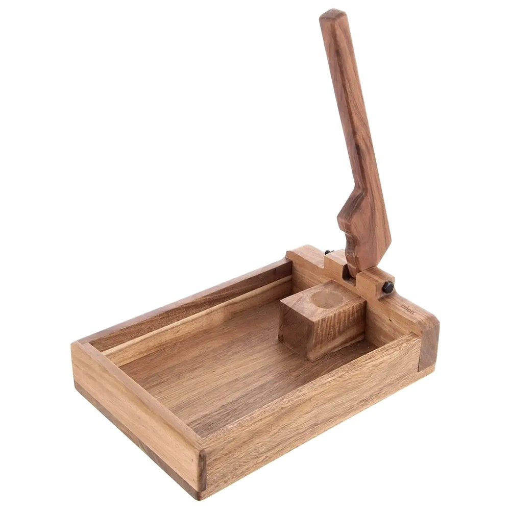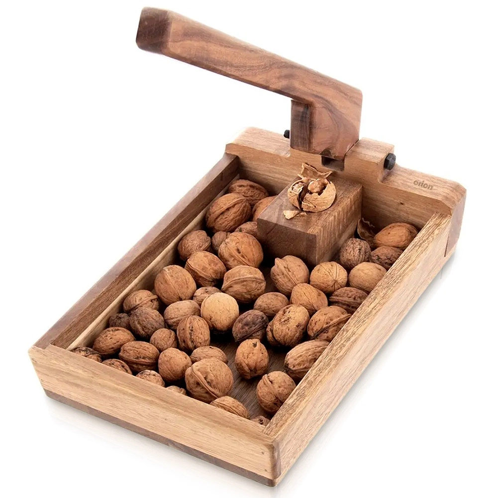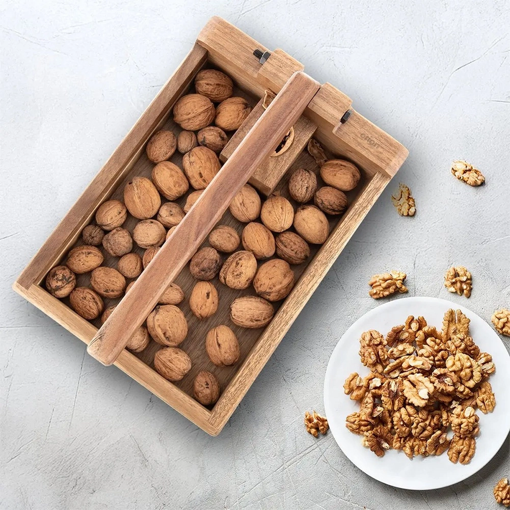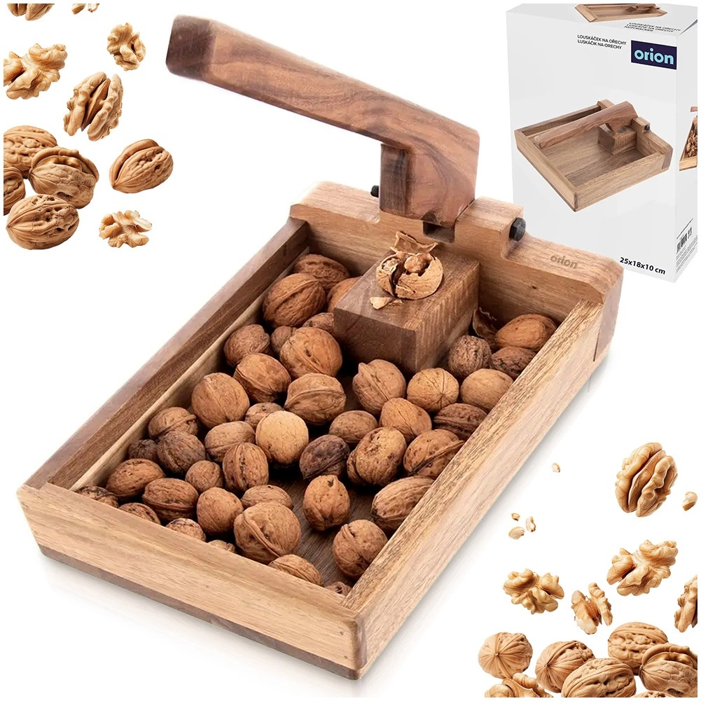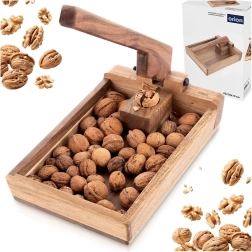 Denne træ-nøddeknækker med praktisk opsamlingsbakke holder skaller og kerner samlet, så knækningen er ren og overskuelig. Løftemekanismen giver tilstrækkelig kraft selv med mindre tryk, hvilket sikrer hurtig og sikker knækning af nødder.