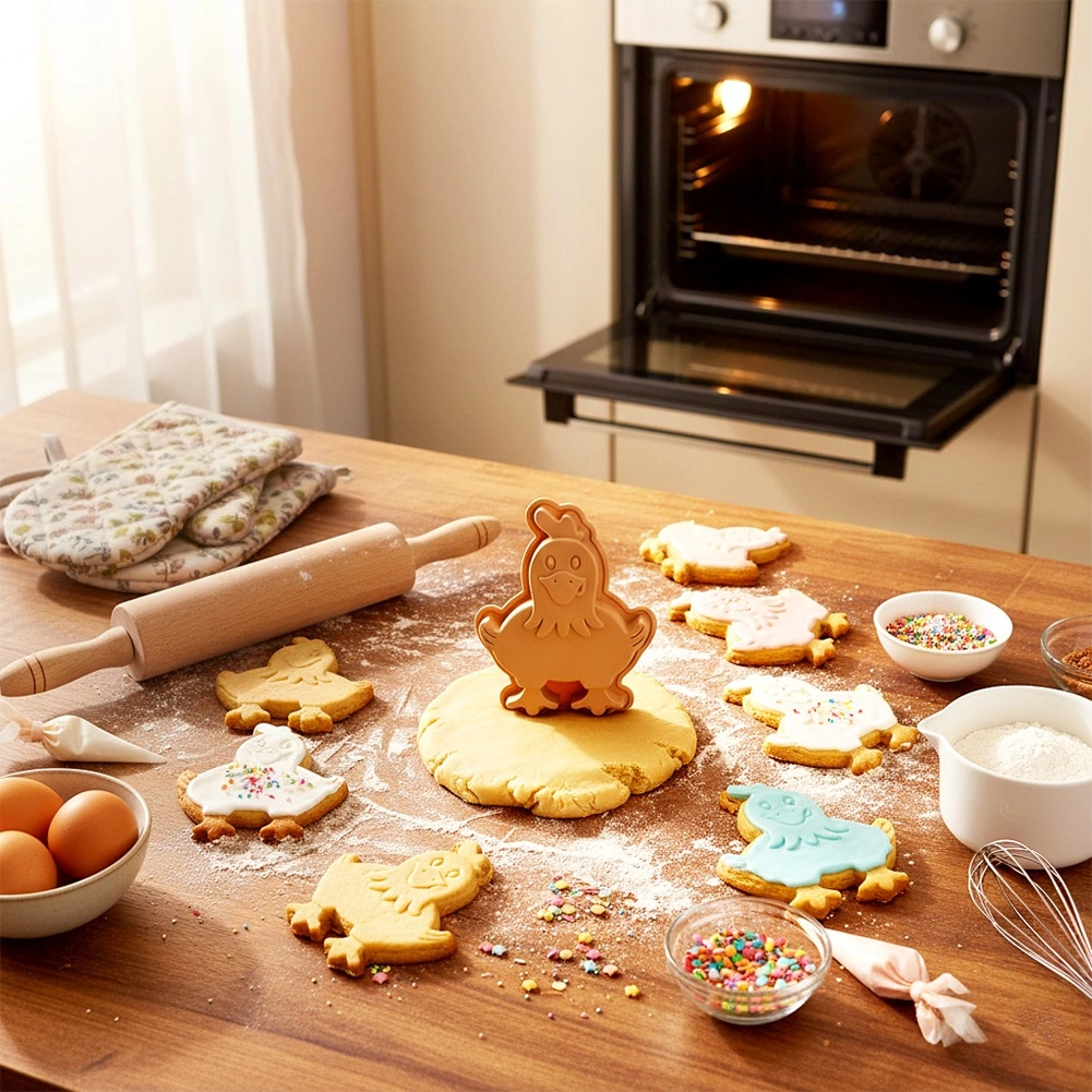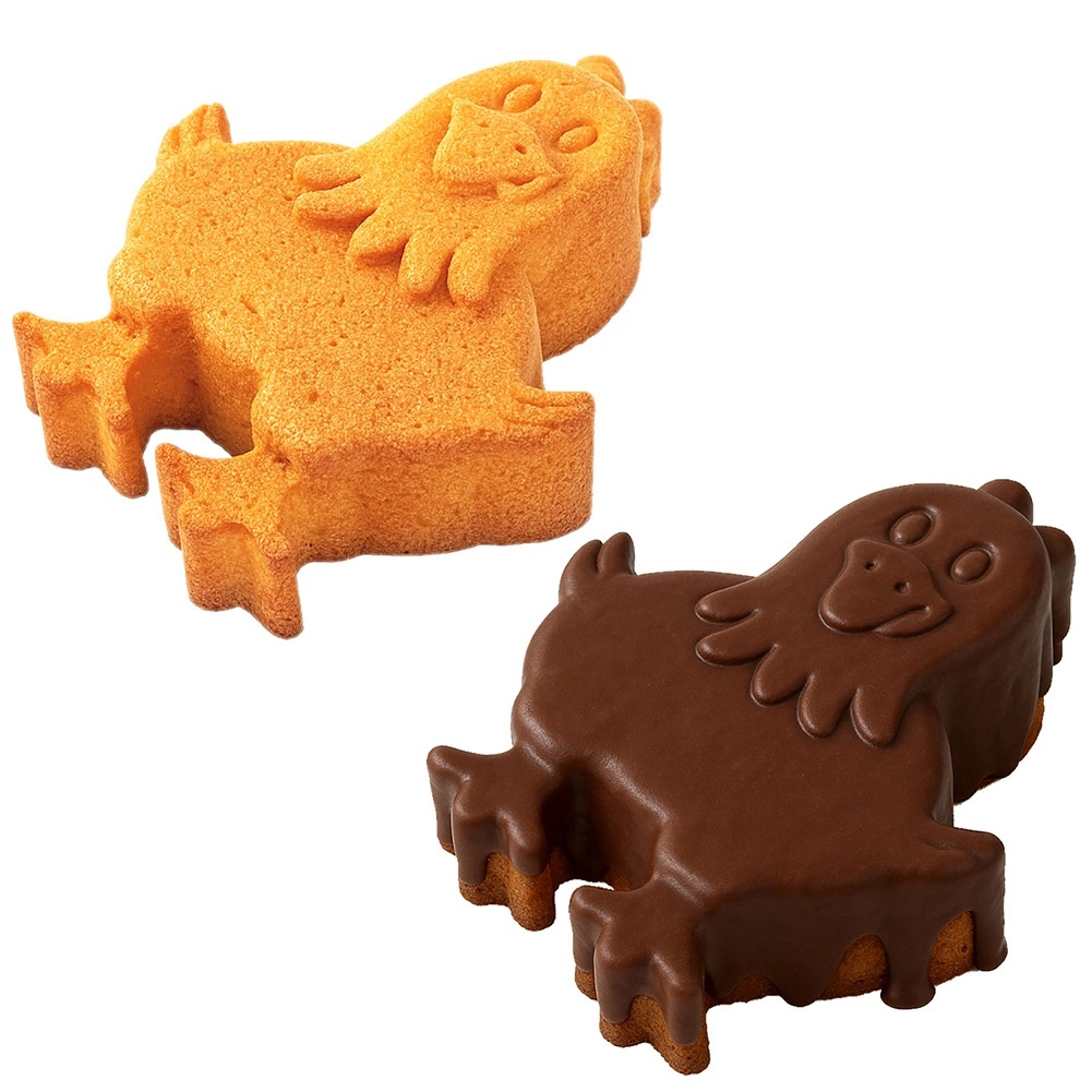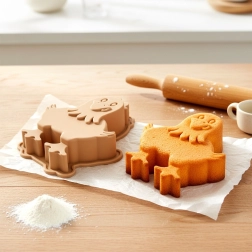 Stilfuld silikoneform formet som en høne til nem bagning af hjemmelige lækkerier. Takket være det fleksible materiale er den non-stick, sikrer jævn gennembagning og nem udtagning af desserter. Tåler -40 °C til +220 °C, er egnet til ovn, mikroovn, fryser og opvaskemaskine og skaber en effektfuld 3D-form til kager, sandkager, gelé og sjove projekter med børn.