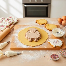 Relieffet med fine detaljer i uld og ansigt skaber flotte kager, småkager og gelé uden tidskrævende pynt.
