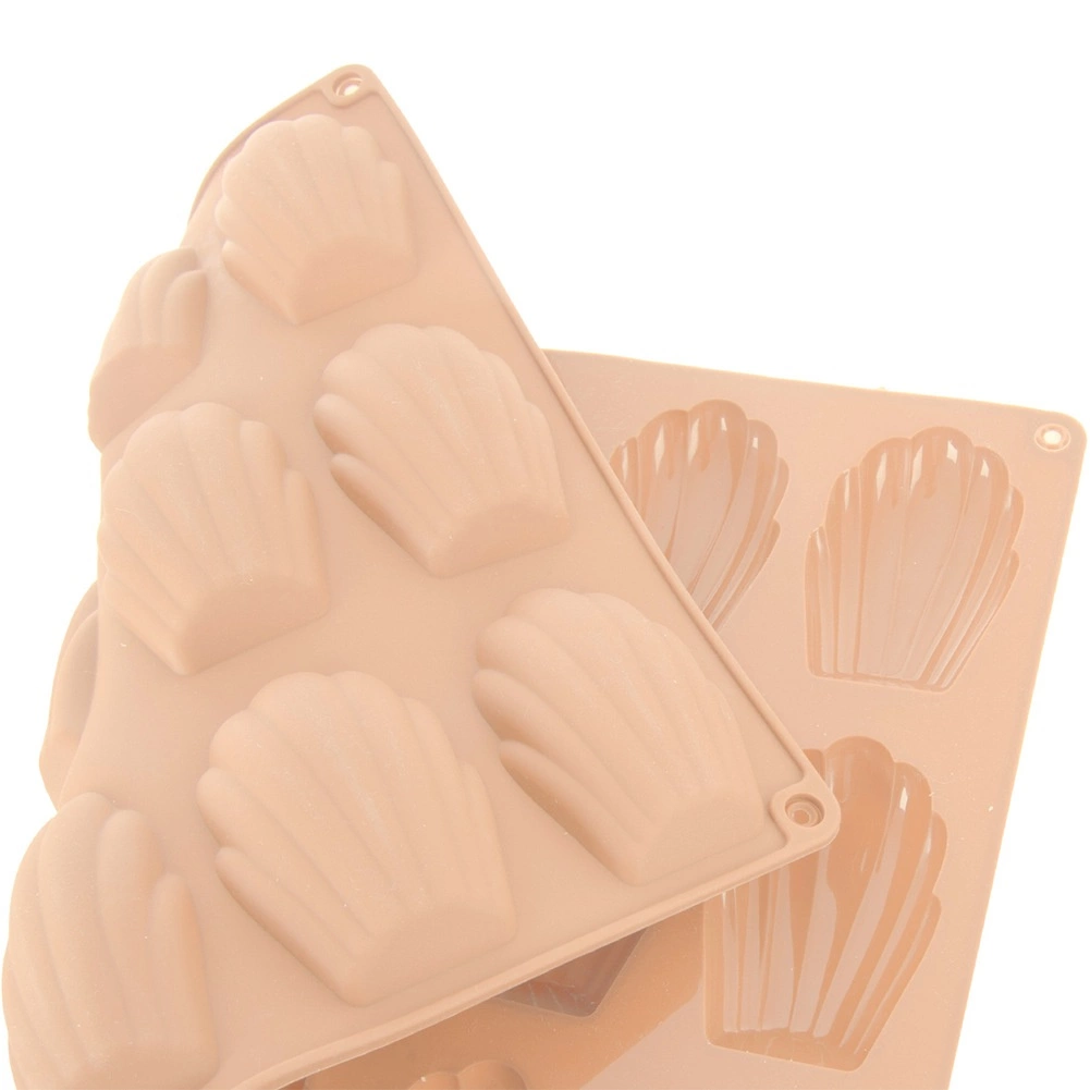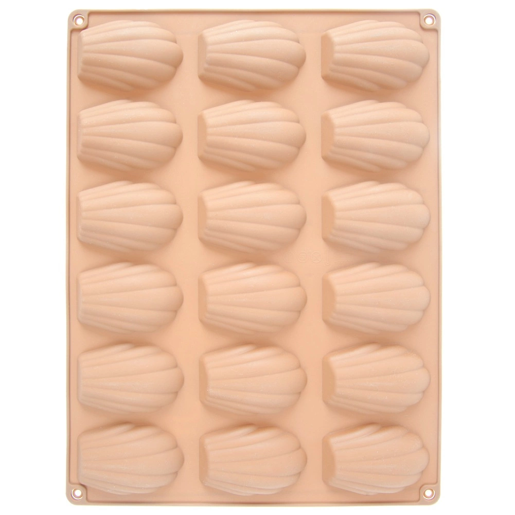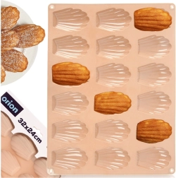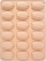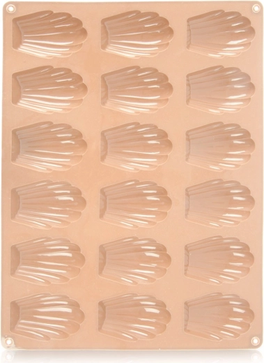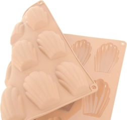 Denne beige silikoneform er ideel til at bage de populære franske madeleinekager samt til at lave hjemmelavede chokolader og praliner i små muslingeformer. Overfladen er naturligt non-stick, så hverken udsmøring med smør eller drys med mel er nødvendig – de færdige stykker tages let ud uden at ødelægge formen.
