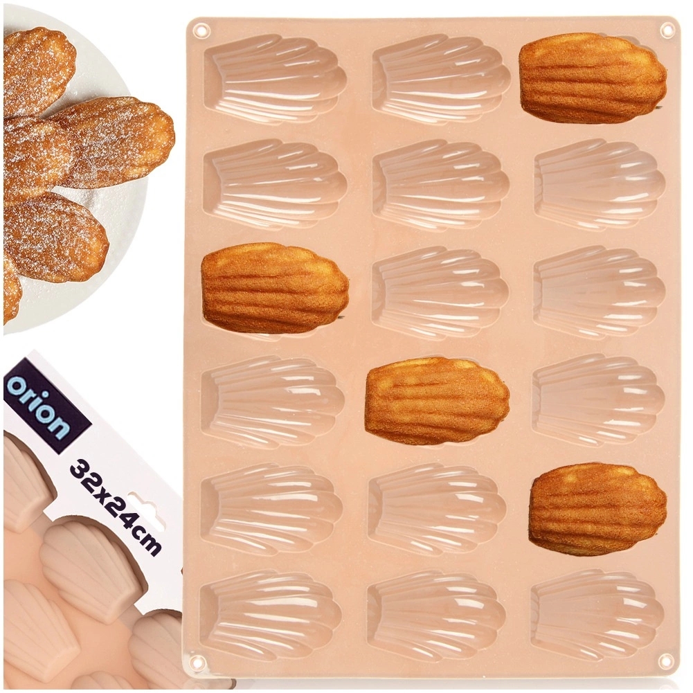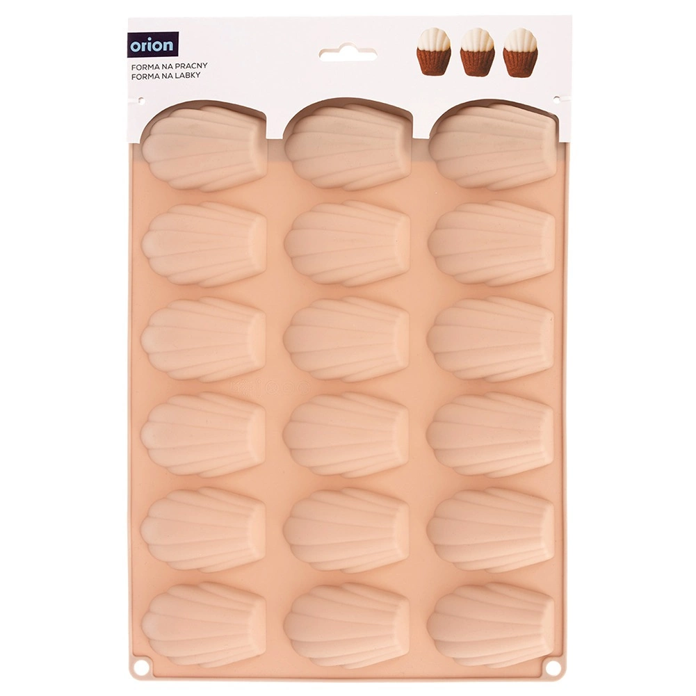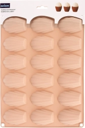 Praktisk silikoneform til bagning af madeleinekager og praliner gør det muligt at tilberede op til 18 stk. ad gangen. Takket være non-stick silikone slipper dejen let uden udsmøring, formen er let og fleksibel, varmebestandig i intervallet -40 °C til +220 °C og egnet til ovn, mikroovn og fryser. For nem vedligeholdelse er den egnet til opvaskemaskine. Dokumenteret kvalitet ORION.