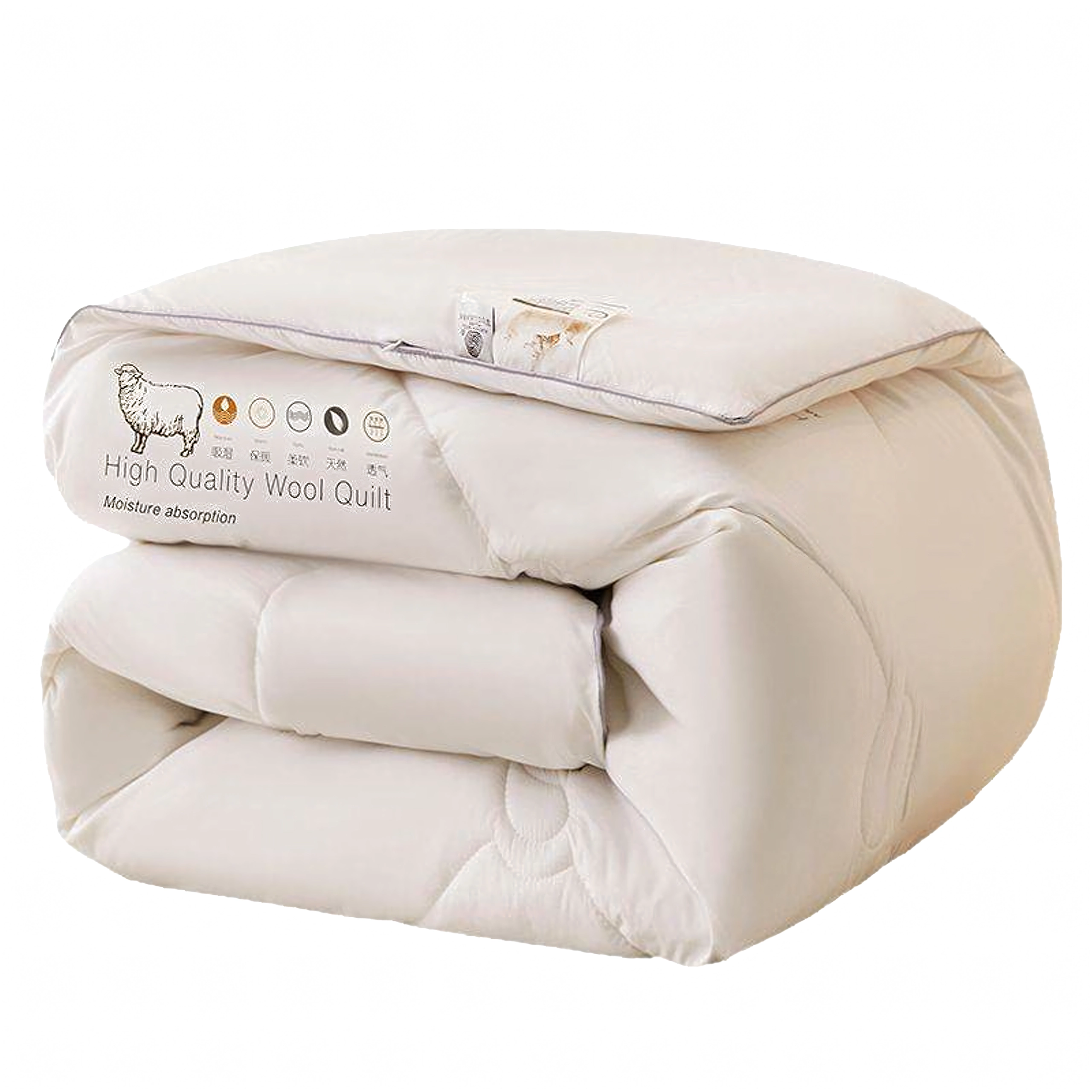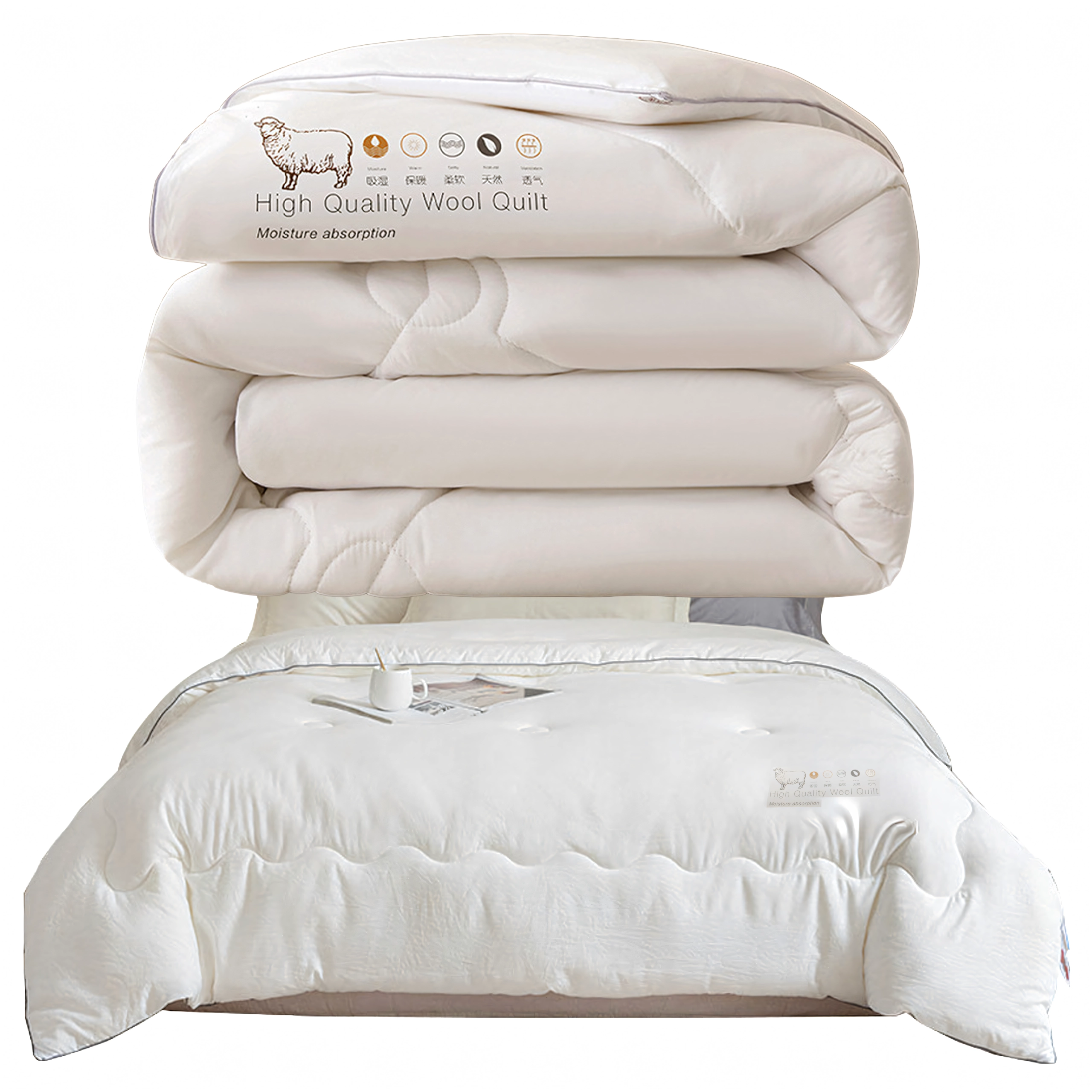 Et kraftigt, blødt og behageligt tæppe med fyld af fåreuld giver en varm omfavnelse selv i de koldeste nætter.