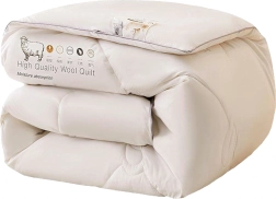 Nyd den naturlige varme og komfortable søvn med et vintertæppe af fåreuld i størrelsen 160×200 cm. Takket være de termoregulerende egenskaber holder det en stabil kropstemperatur, ånder fremragende og giver lethed og blødhed at røre ved – det ideelle valg til kolde nætter for alle, der elsker naturlige materialer.