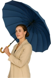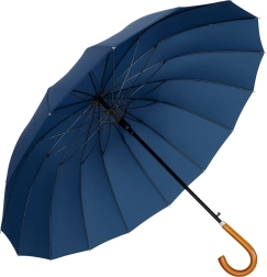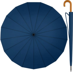 Elegant og robust lang paraply med 24 forstærkede ribber, der giver enestående stabilitet selv i blæsevejr. Den har stor skærm på 115 cm, automatisk åbning for hurtig brug, vandtæt og hurtigtørrende stof samt J-formet træhåndtag for komfortabel bæring. Inkluderer etui med skulderrem.