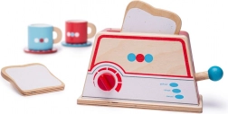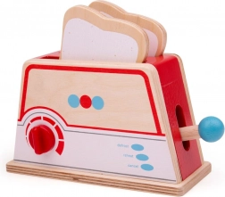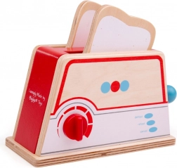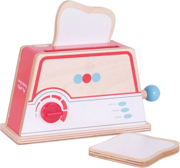 Børn indstiller ”bruningen” med den roterende vælger og starter ristningen med løftestangen. Efter et øjeblik popper toasten op – ideelt til at efterligne den ægte morgenmadsforberedelse.