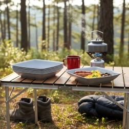 Perfekt til servering af måltider i naturen – lette, pladsbesparende og holdbare dele til enhver tur.
