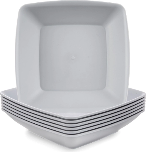 Det praktiske sæt med 6 dybe tallerkener SANDY i firkantet design er et fremragende valg til supper, pasta, salater eller one-pot retter. Takket være det lette og samtidig stærke materiale passer de både i hjemmet og på farten – til picnic, have, sommerhus eller camping.