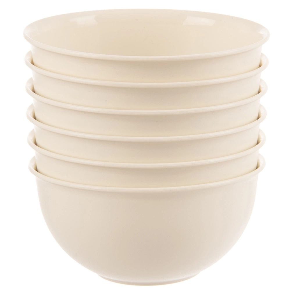 Sættet med 6 plastskåle SANDY i elegant cremefarve kombinerer holdbarhed og lav vægt. Hver skål måler 13 × 6 cm og rummer 500 ml – den ideelle størrelse til supper, cerealier, salater og små desserter. Den glatte overflade gør dem lette at rengøre, og det minimalistiske design passer ind i ethvert køkken.